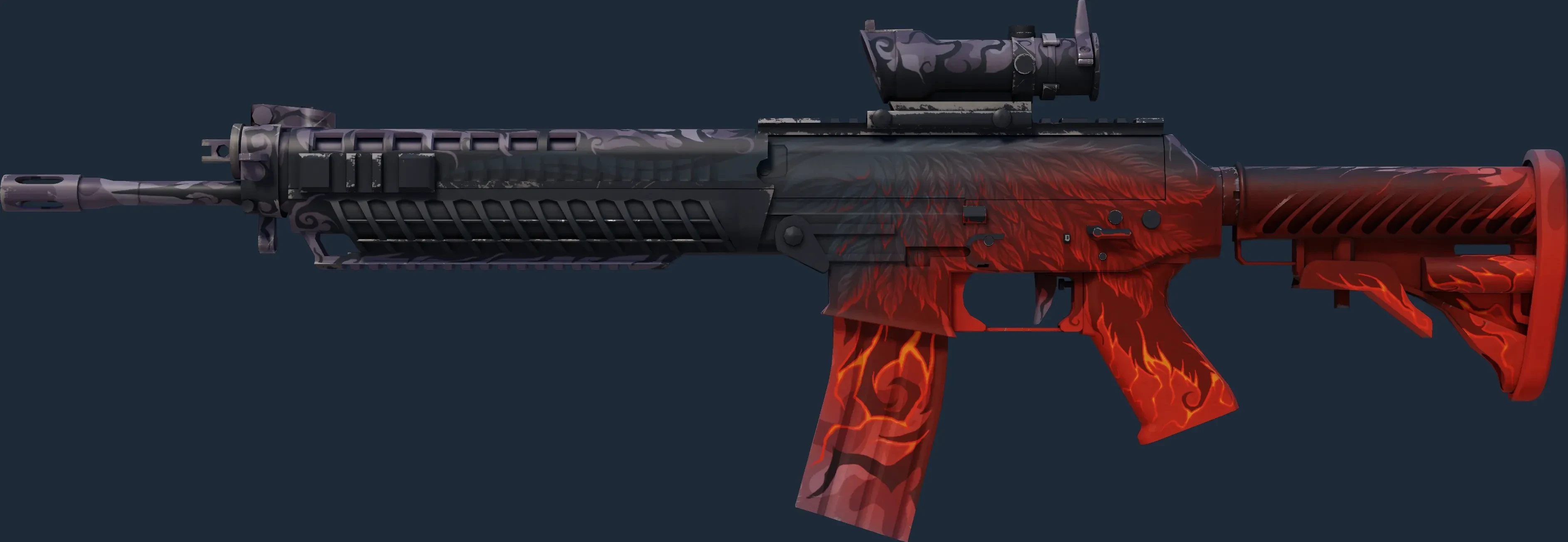 The SG 553 | Darkwing is a Covert grade skin for the SG 553 in Counter-Strike 2. It features a Custom Paint Job finish and was designed by blossomalex.