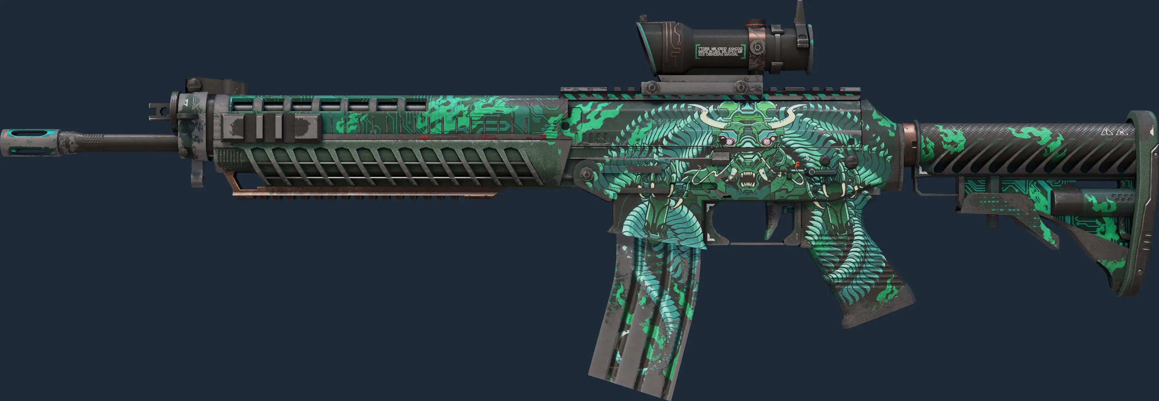 The SG 553 | Dragon Tech is a Covert grade skin for the SG 553 in Counter-Strike 2. It features a Custom Paint Job finish and was designed by Aleks36.