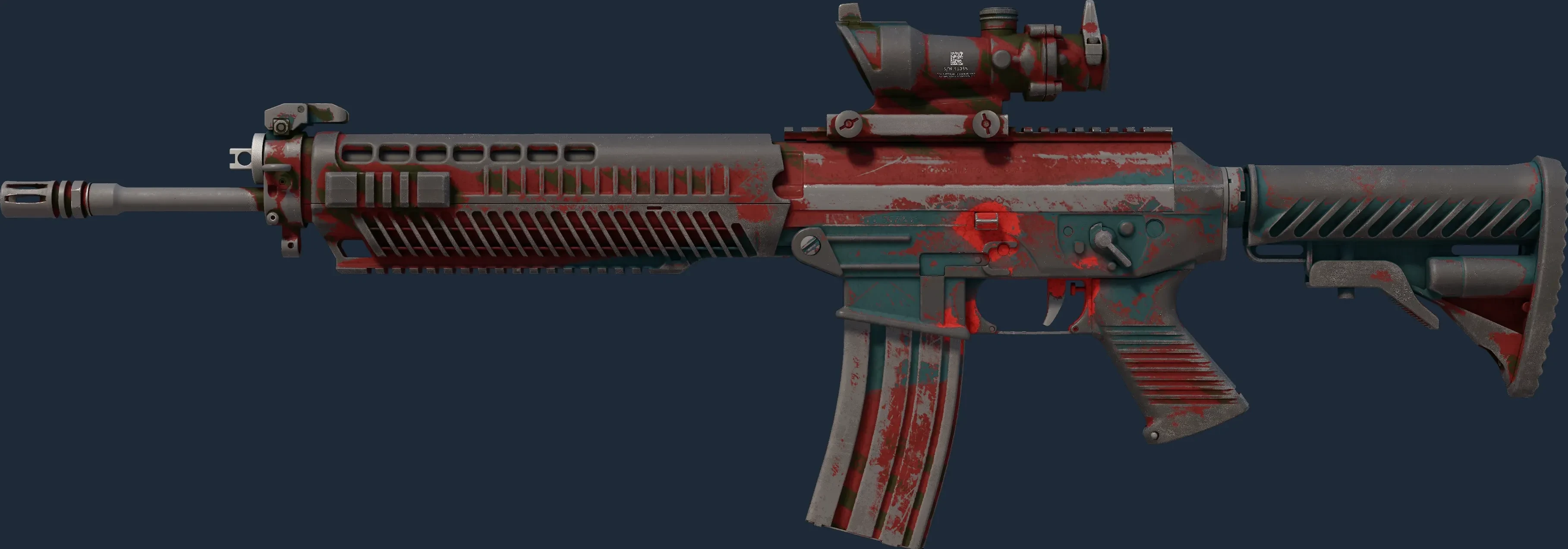 The SG 553 | Fallout Warning is a Covert grade skin for the SG 553 in Counter-Strike 2. It features a Custom Paint Job finish and was designed by Valve.