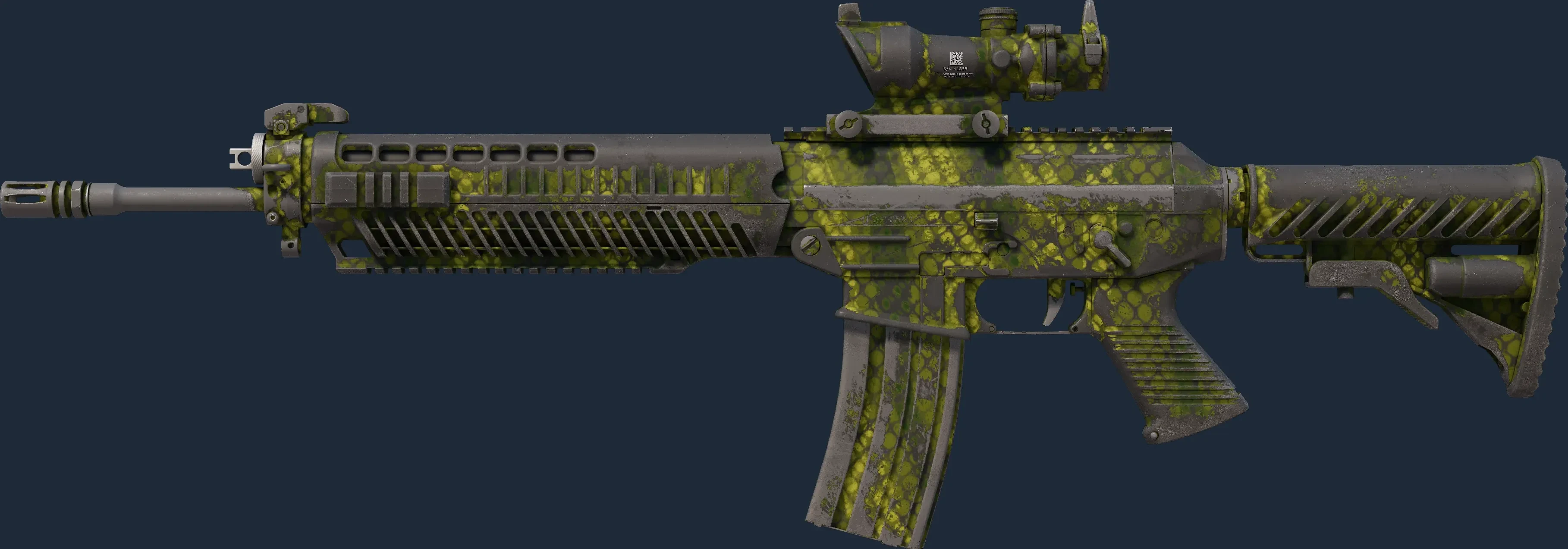 The SG 553 | Gator Mesh is a Covert grade skin for the SG 553 in Counter-Strike 2. It features a Custom Paint Job finish and was designed by Valve.