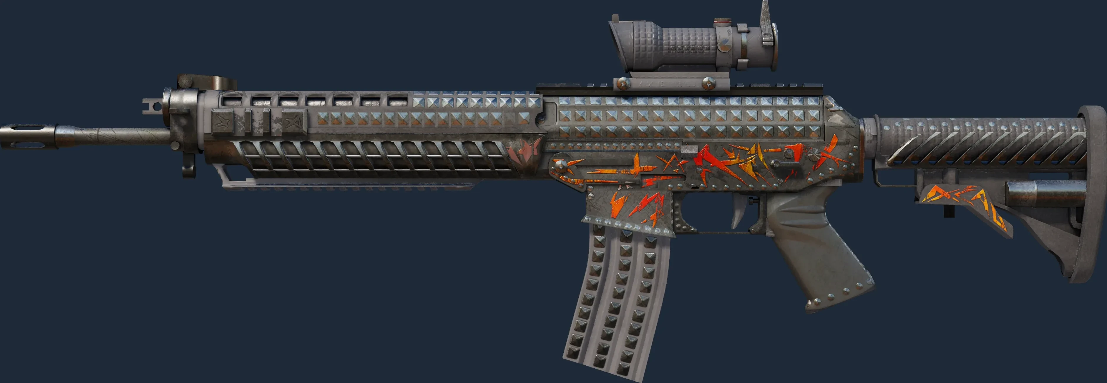 The SG 553 | Heavy Metal is a Covert grade skin for the SG 553 in Counter-Strike 2. It features a Custom Paint Job finish and was designed by de puiseau.