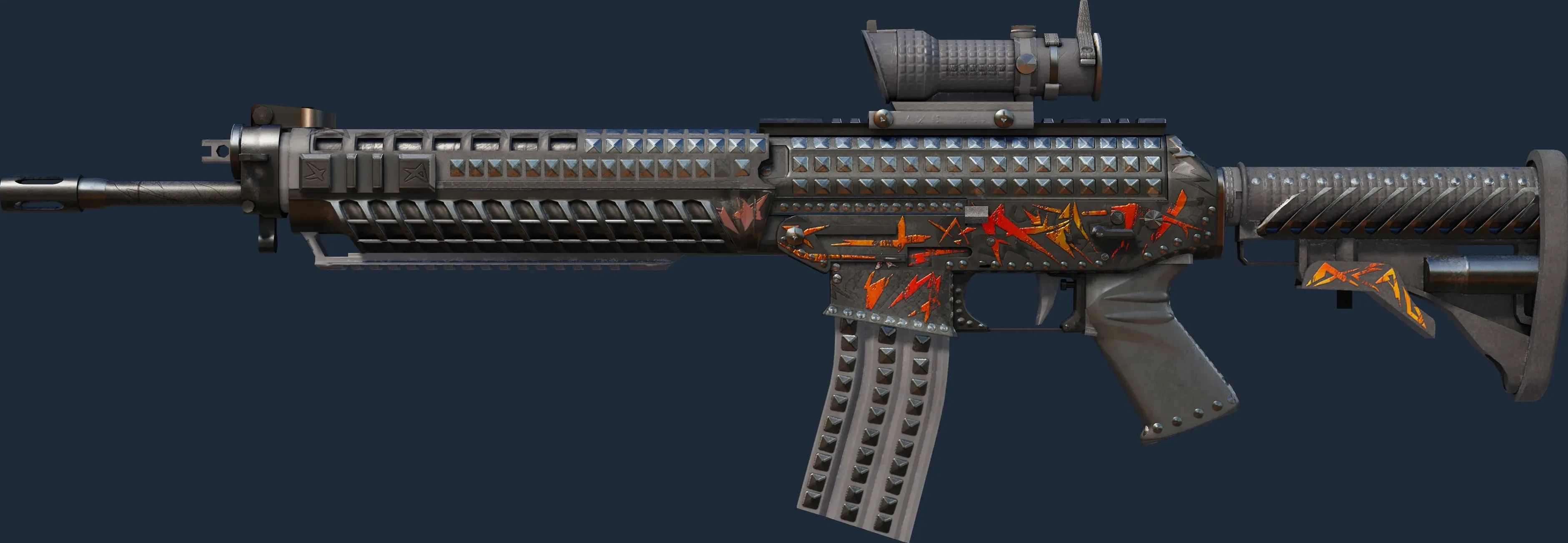 The SG 553 | Heavy Metal is a Covert grade skin for the SG 553 in Counter-Strike 2. It features a Custom Paint Job finish and was designed by de puiseau.