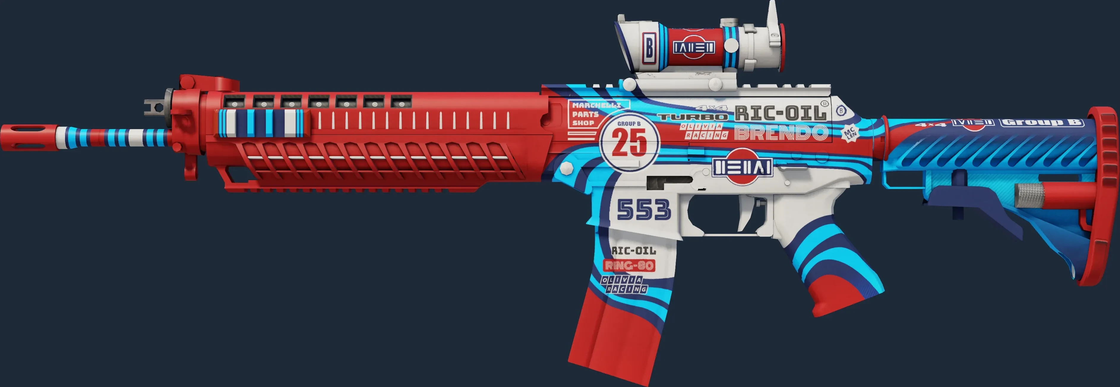The SG 553 | Integrale is a Covert grade skin for the SG 553 in Counter-Strike 2. It features a Custom Paint Job finish and was designed by Valve.