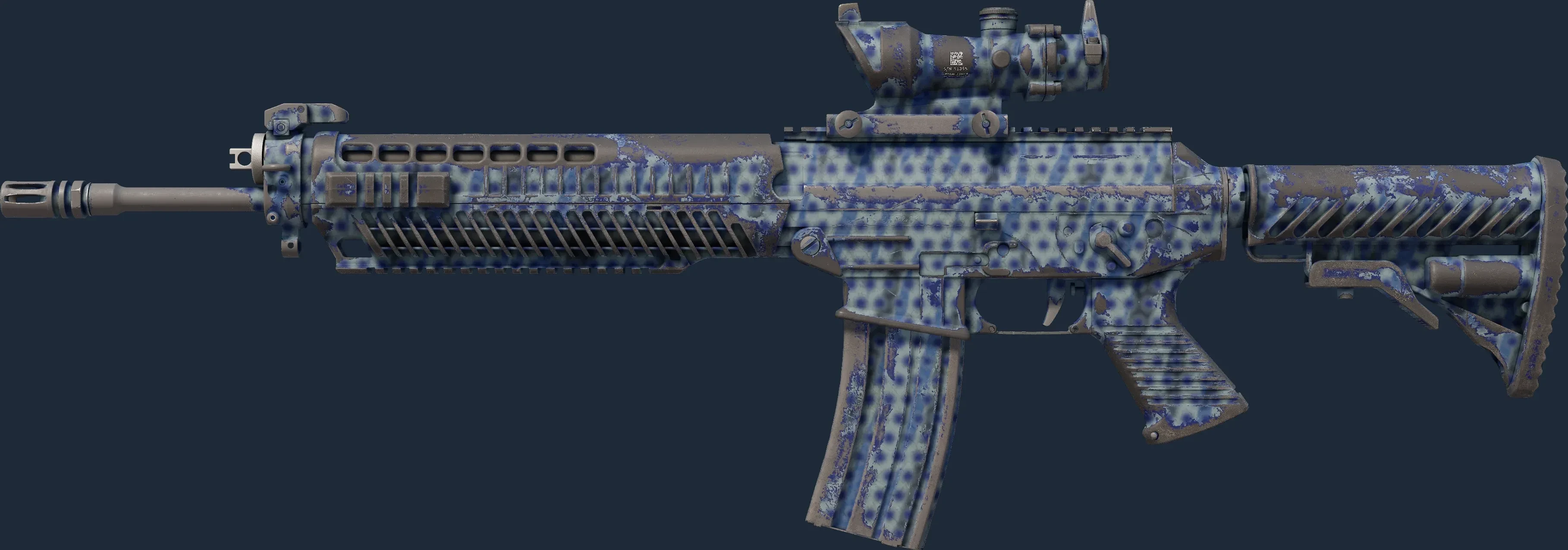 The SG 553 | Waves Perforated is a Covert grade skin for the SG 553 in Counter-Strike 2. It features a Custom Paint Job finish and was designed by Valve.
