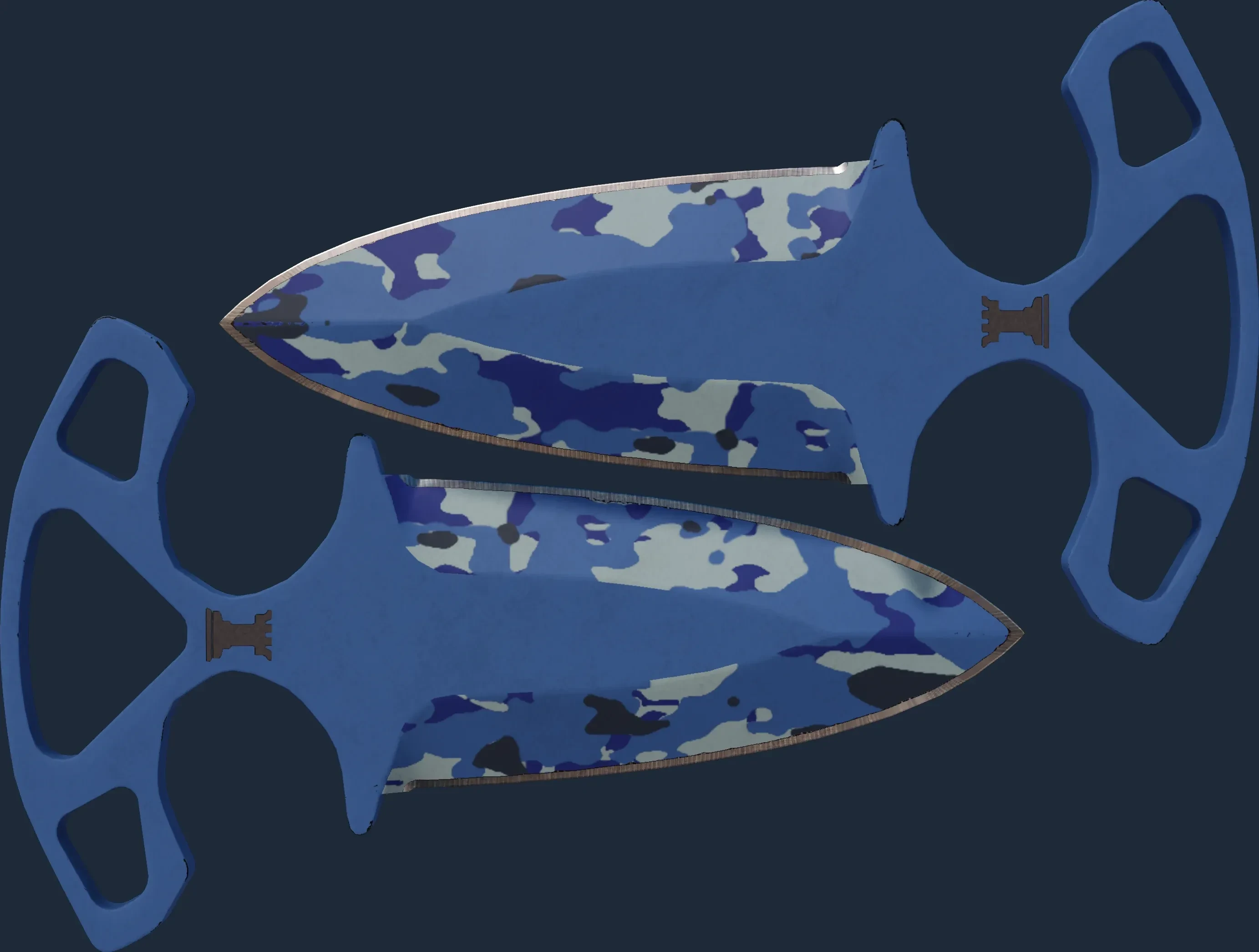 The Shadow Daggers | Bright Water is a Covert grade skin for the Shadow Daggers in Counter-Strike 2. It features a Custom Paint Job finish and was designed by Valve.