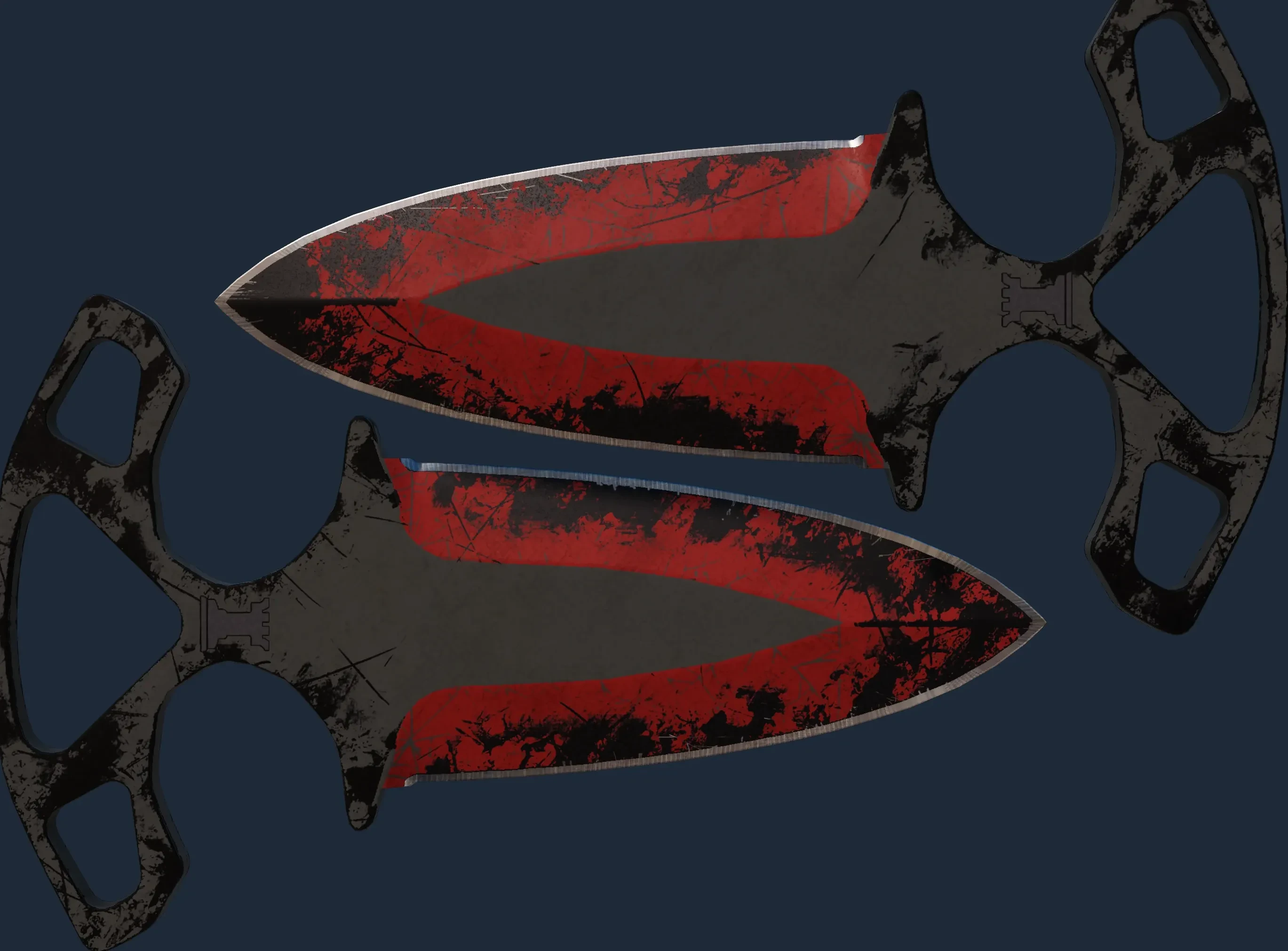 The Shadow Daggers | Crimson Web is a Covert grade skin for the Shadow Daggers in Counter-Strike 2. It features a Custom Paint Job finish and was designed by Valve.