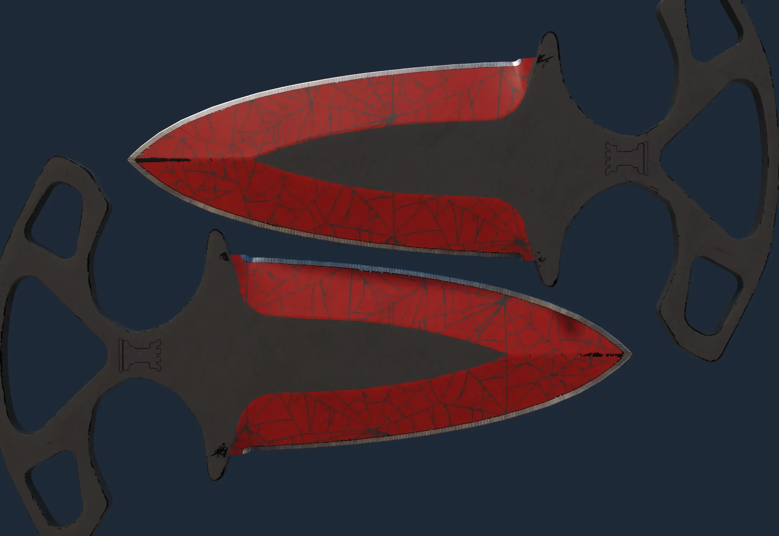 The Shadow Daggers | Crimson Web is a Covert grade skin for the Shadow Daggers in Counter-Strike 2. It features a Custom Paint Job finish and was designed by Valve.