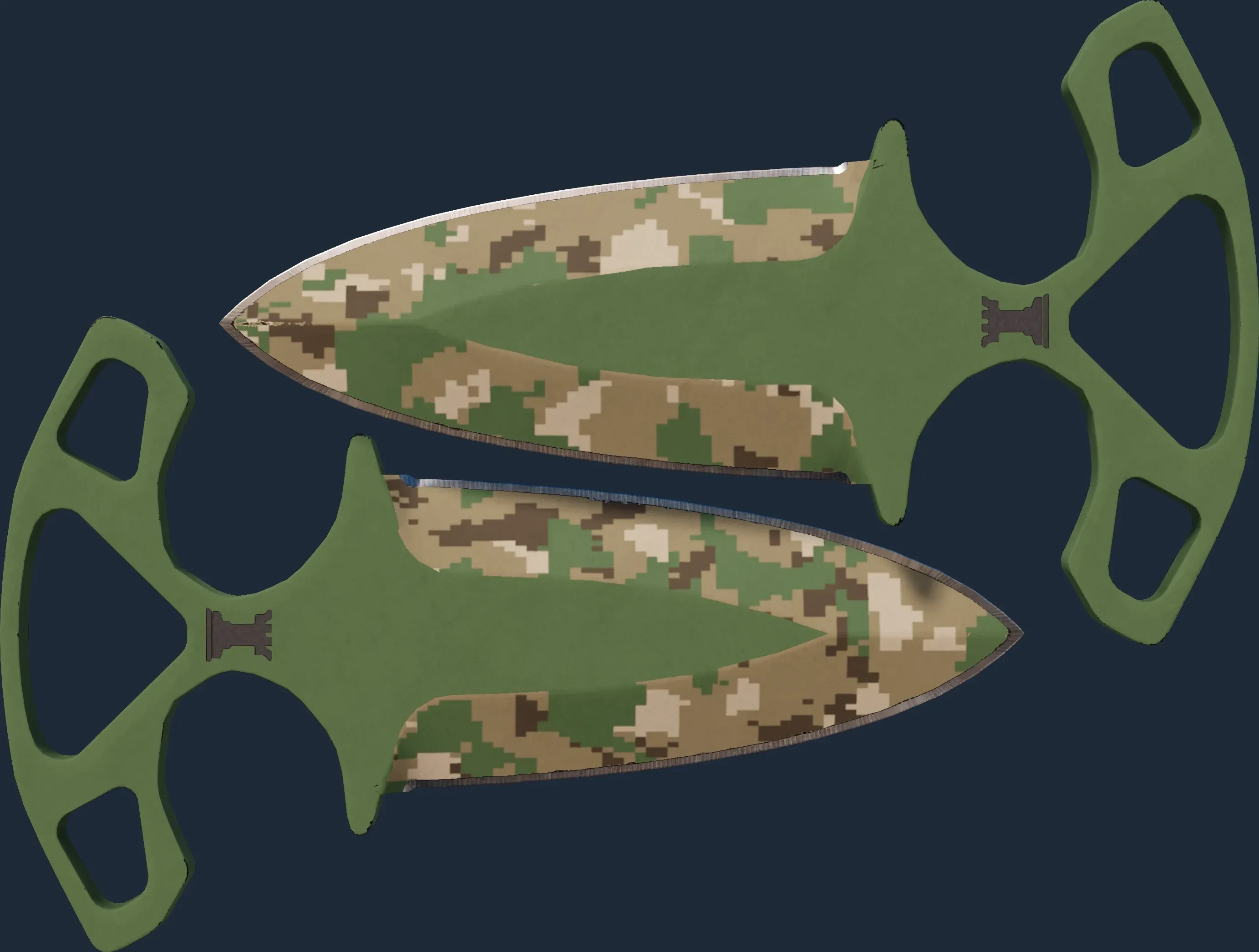 The Shadow Daggers | Forest Ddpat is a Covert grade skin for the Shadow Daggers in Counter-Strike 2. It features a Custom Paint Job finish and was designed by Valve.