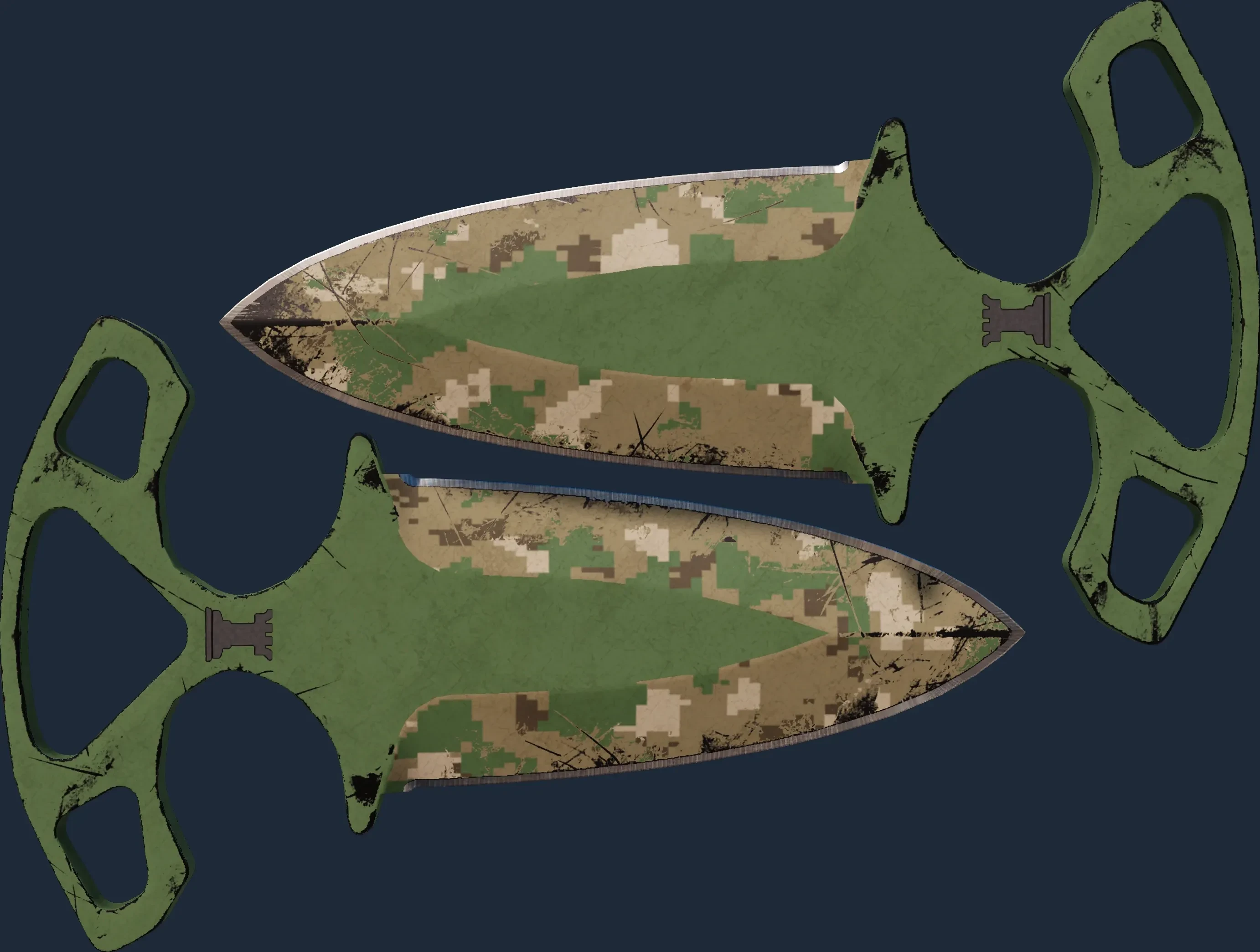 The Shadow Daggers | Forest Ddpat is a Covert grade skin for the Shadow Daggers in Counter-Strike 2. It features a Custom Paint Job finish and was designed by Valve.