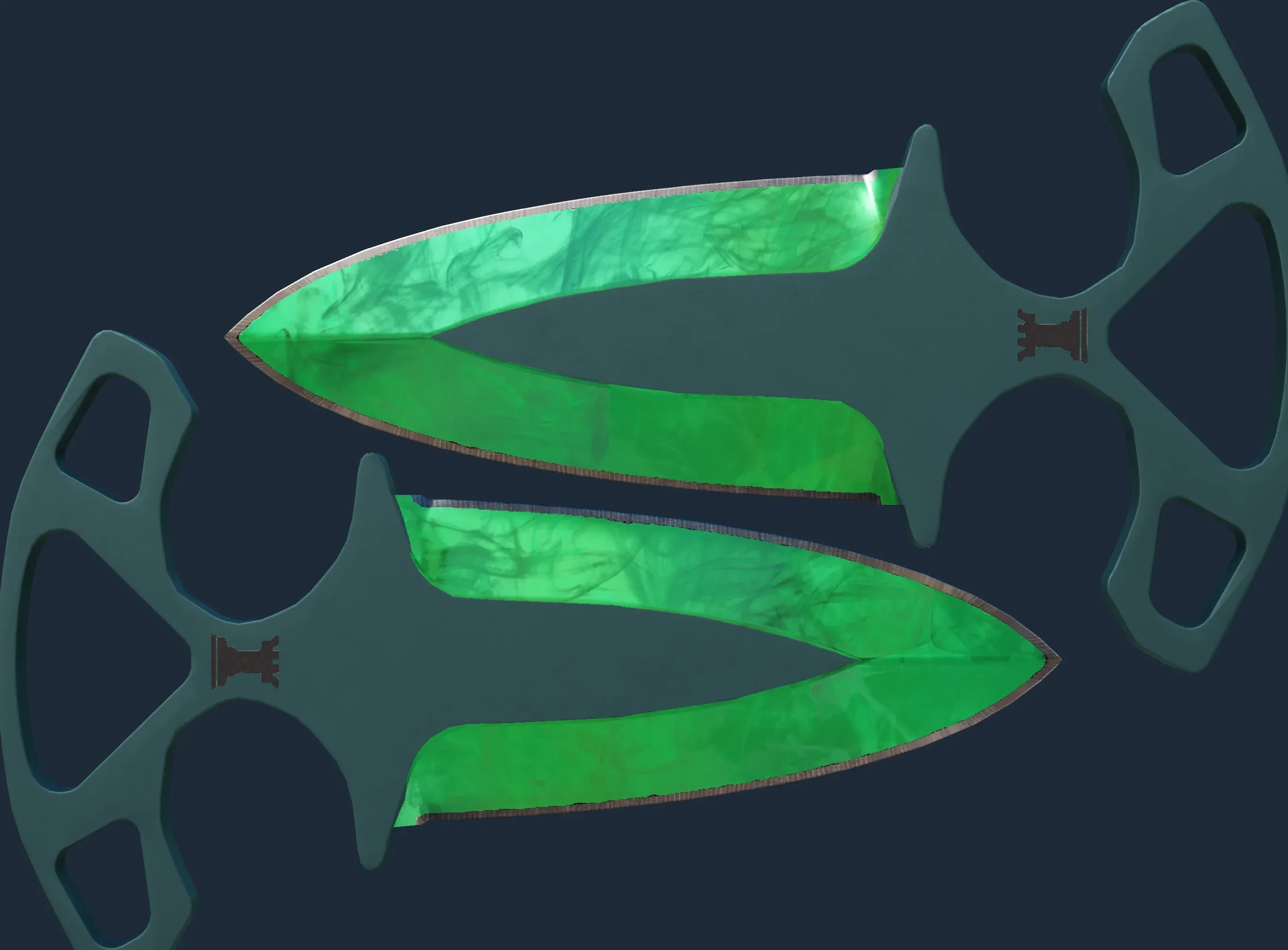 The Shadow Daggers | Gamma Doppler Emerald is a Covert grade skin for the Shadow Daggers in Counter-Strike 2. It features a Custom Paint Job finish and was designed by Valve.