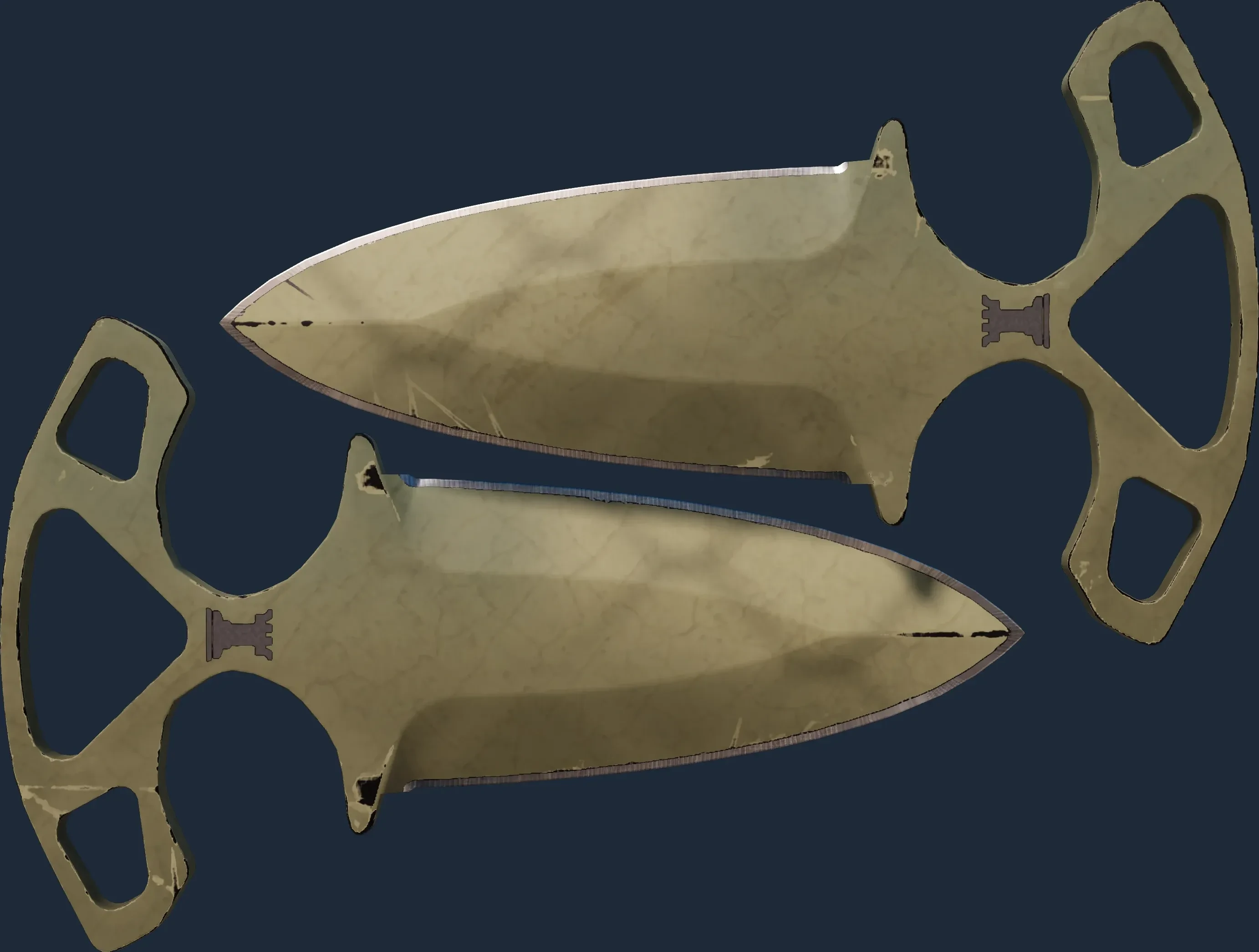 The Shadow Daggers | Safari Mesh is a Covert grade skin for the Shadow Daggers in Counter-Strike 2. It features a Custom Paint Job finish and was designed by Valve.