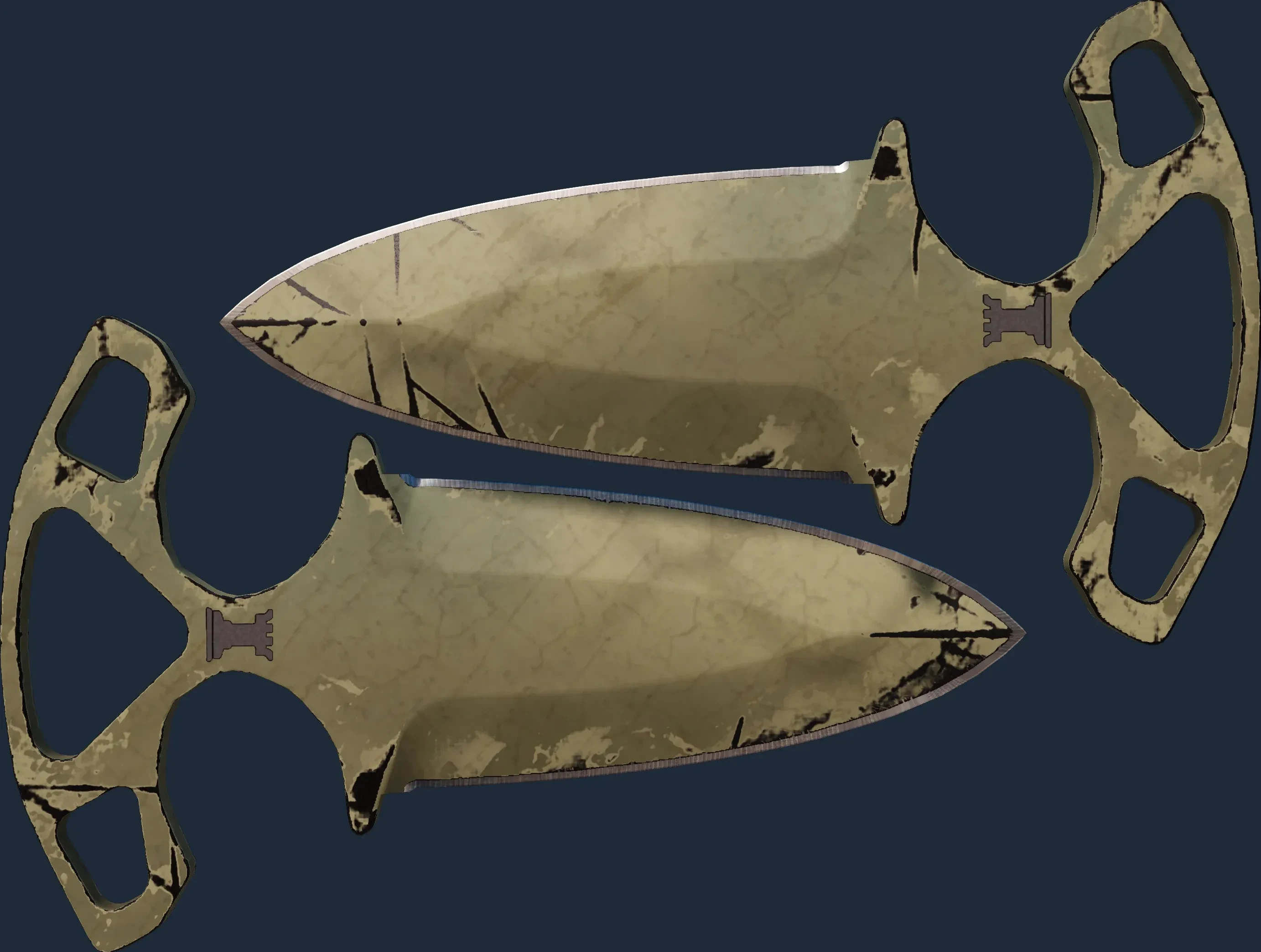 The Shadow Daggers | Safari Mesh is a Covert grade skin for the Shadow Daggers in Counter-Strike 2. It features a Custom Paint Job finish and was designed by Valve.