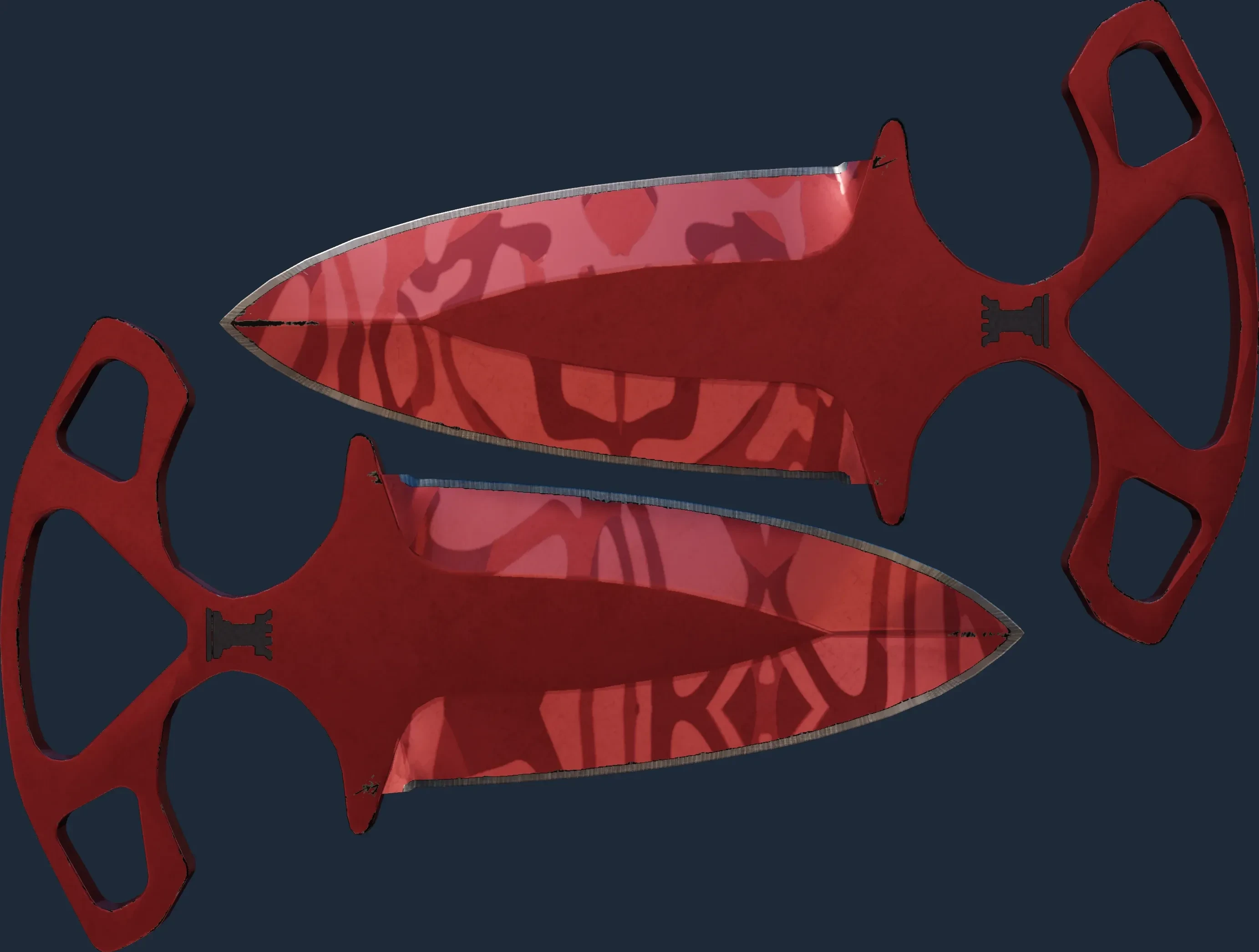 The Shadow Daggers | Slaughter is a Covert grade skin for the Shadow Daggers in Counter-Strike 2. It features a Custom Paint Job finish and was designed by Valve.