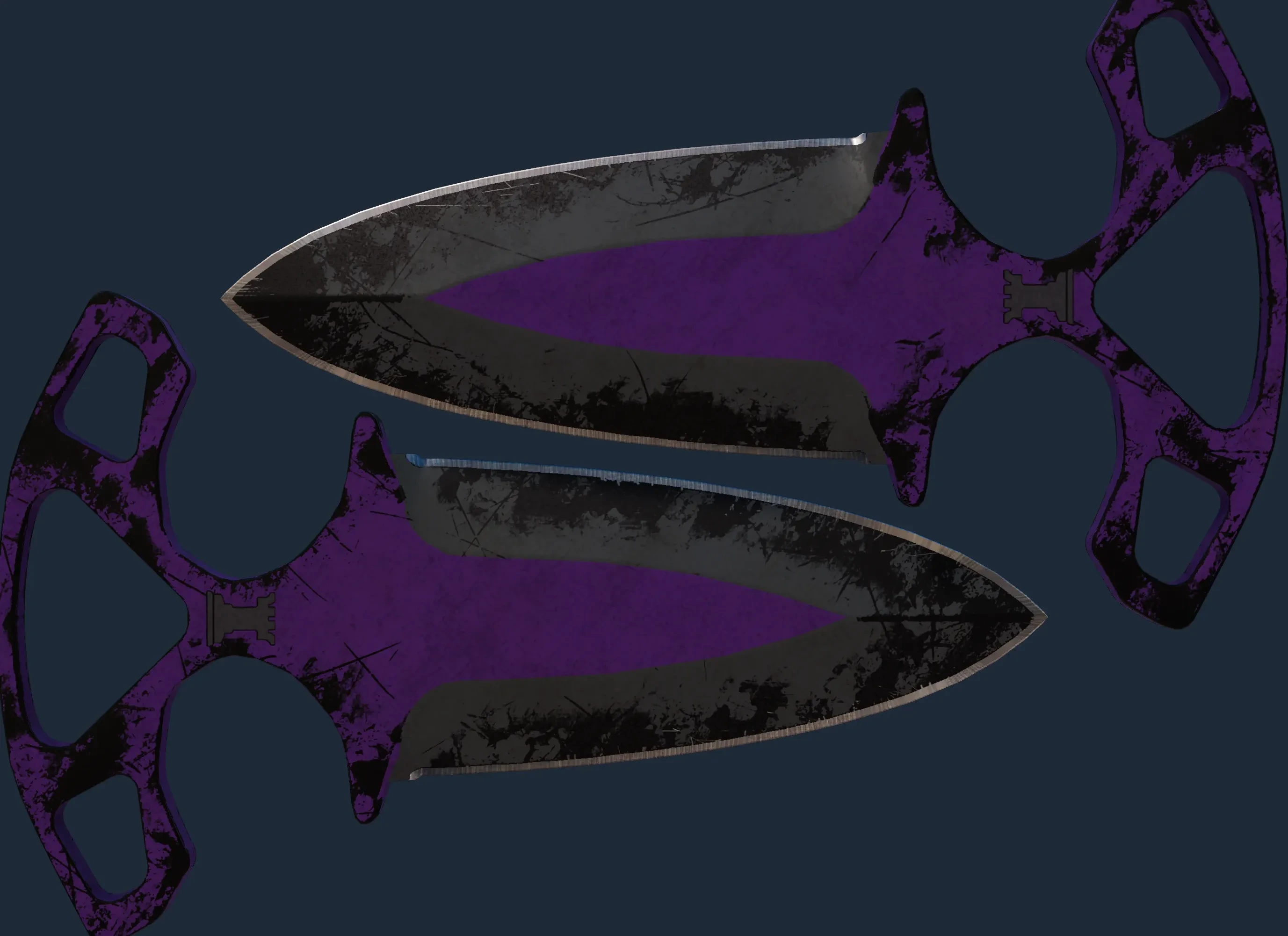 The Shadow Daggers | Ultraviolet is a Covert grade skin for the Shadow Daggers in Counter-Strike 2. It features a Custom Paint Job finish and was designed by Valve.
