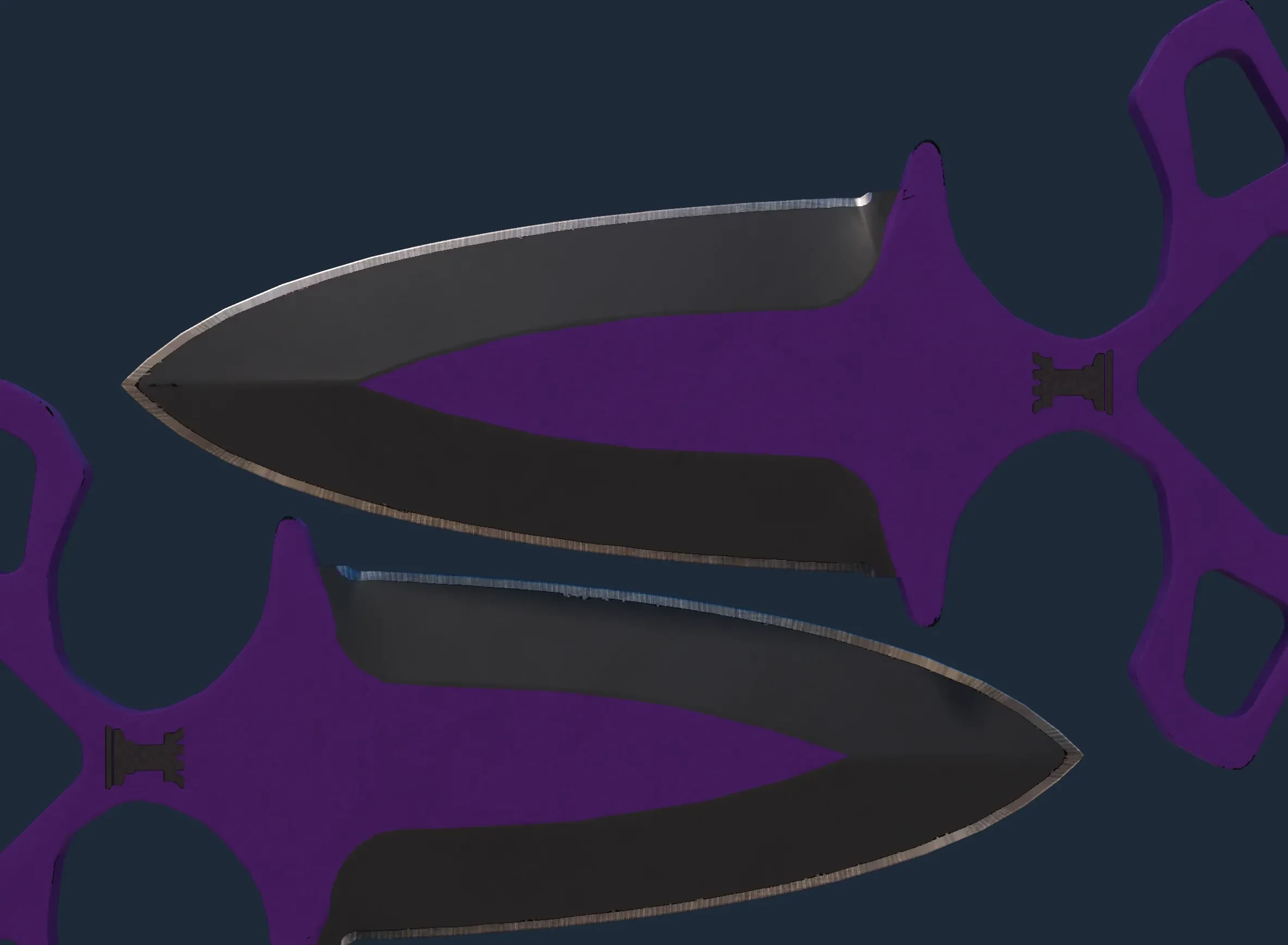 The Shadow Daggers | Ultraviolet is a Covert grade skin for the Shadow Daggers in Counter-Strike 2. It features a Custom Paint Job finish and was designed by Valve.