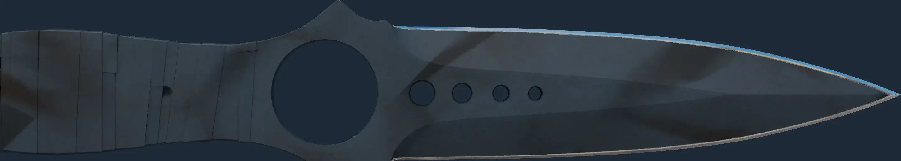 This Skeleton Knife has been painted in a "Spray-Paint" style, with the Night Stripe finish. The weapon is spray-painted with multiple coats through stencil patterns. That said, this particular skin has been mostly painted in shades of gray. The look of the Night Stripe finish is affected by its pattern index. The skin uses the new CS2 model.
