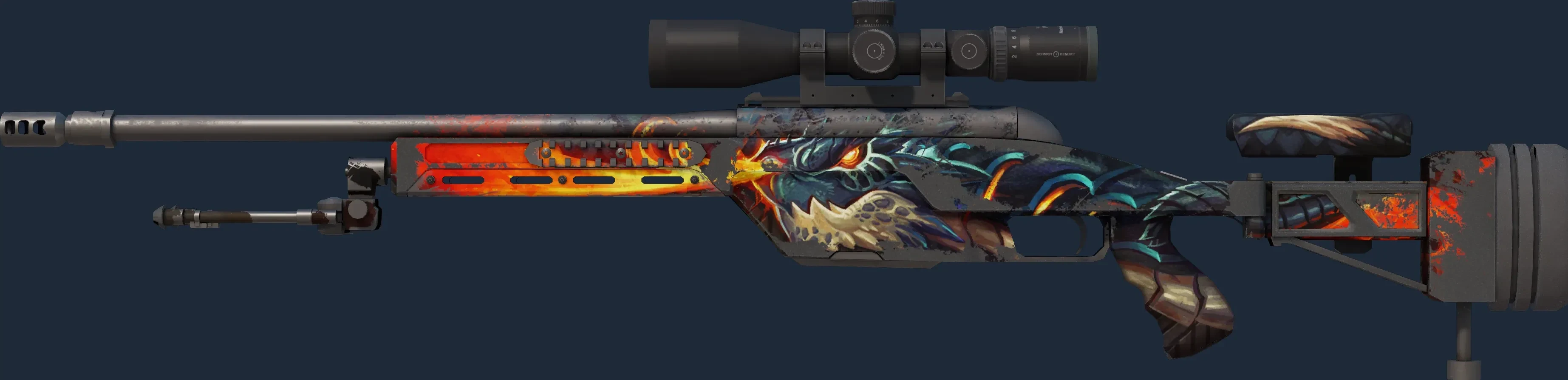 The SSG 08 | Dragonfire is a Covert grade skin for the SSG 08 in Counter-Strike 2. It features a Custom Paint Job finish and was designed by Puffin.