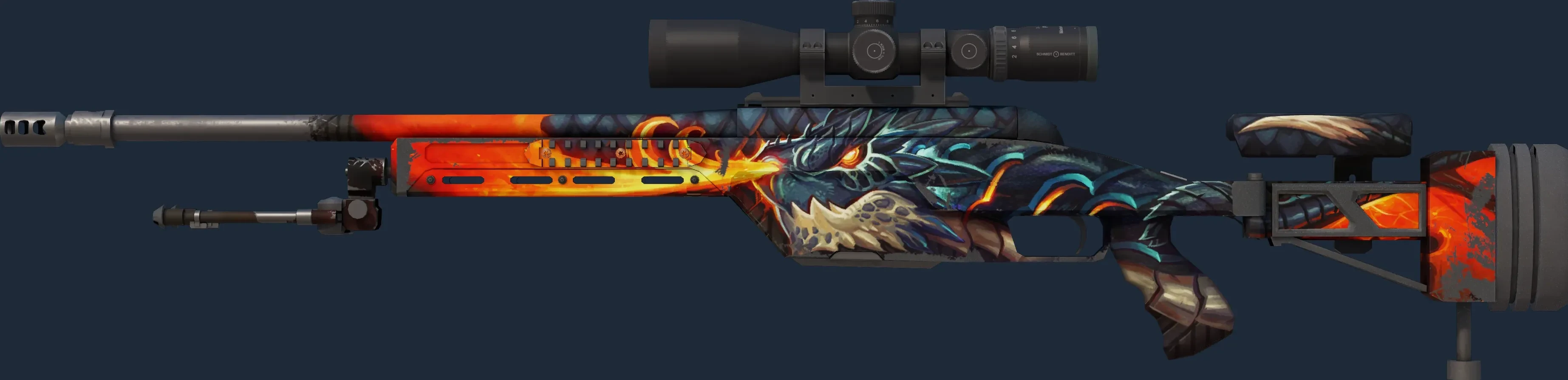 The SSG 08 | Dragonfire is a Covert grade skin for the SSG 08 in Counter-Strike 2. It features a Custom Paint Job finish and was designed by Puffin.