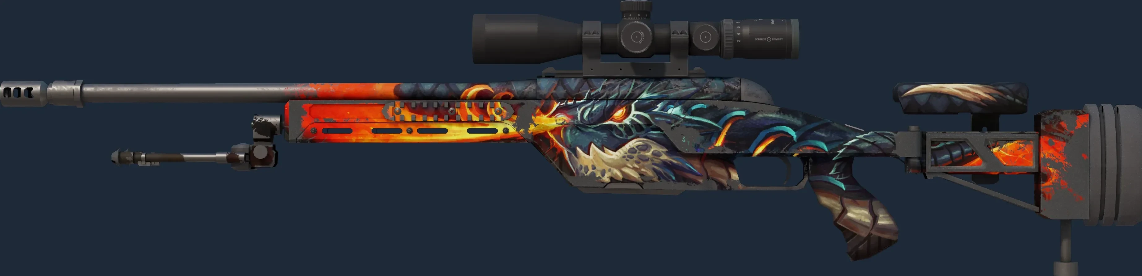 The SSG 08 | Dragonfire is a Covert grade skin for the SSG 08 in Counter-Strike 2. It features a Custom Paint Job finish and was designed by Puffin.