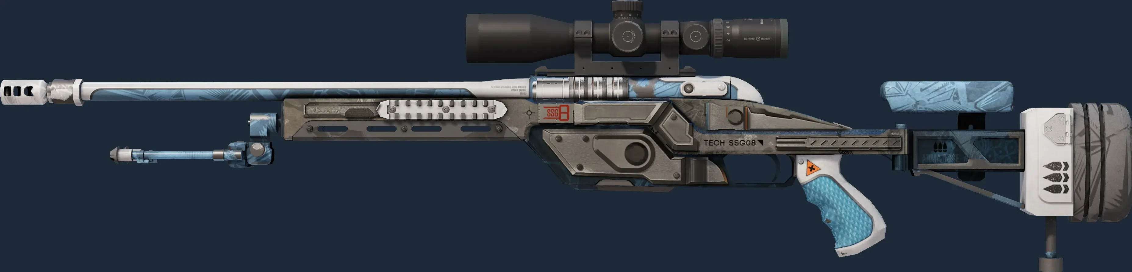 The SSG 08 | Ghost Crusader is a Covert grade skin for the SSG 08 in Counter-Strike 2. It features a Custom Paint Job finish and was designed by ClegFX.