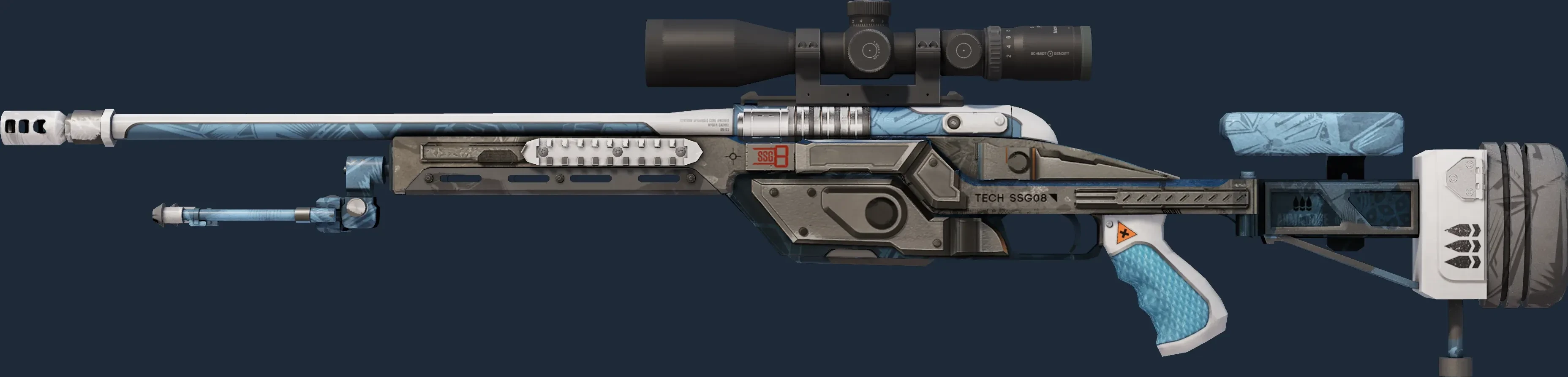 The SSG08 bolt-action is a low-damage but very cost-effective sniper rifle, making it a smart choice for early-round long-range marksmanship. It has been painted white and given arctic blue accents. _I can never replace what was taken from us... but I can take even more from them - The Phoenix and The Initiate Part 2_