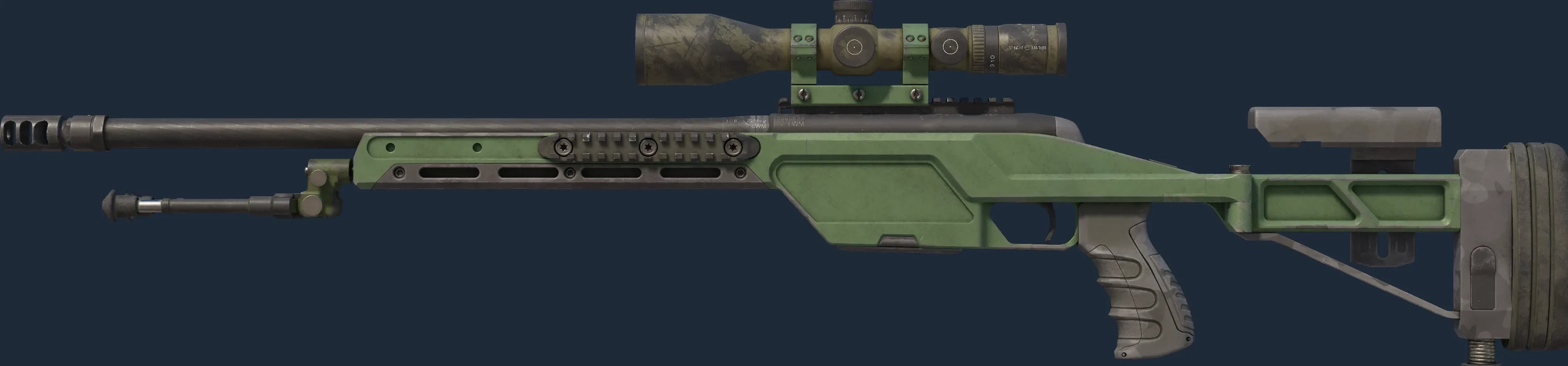 The SSG 08 | Green Ceramic is a Covert grade skin for the SSG 08 in Counter-Strike 2. It features a Custom Paint Job finish and was designed by Valve.