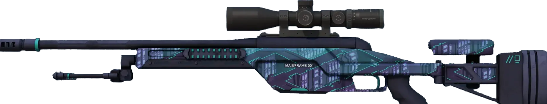 The SSG08 bolt-action is a low-damage but very cost-effective sniper rifle, making it a smart choice for early-round long-range marksmanship. A high tech custom paint job of blues and purples has been applied. _What secrets does _001 hold?_