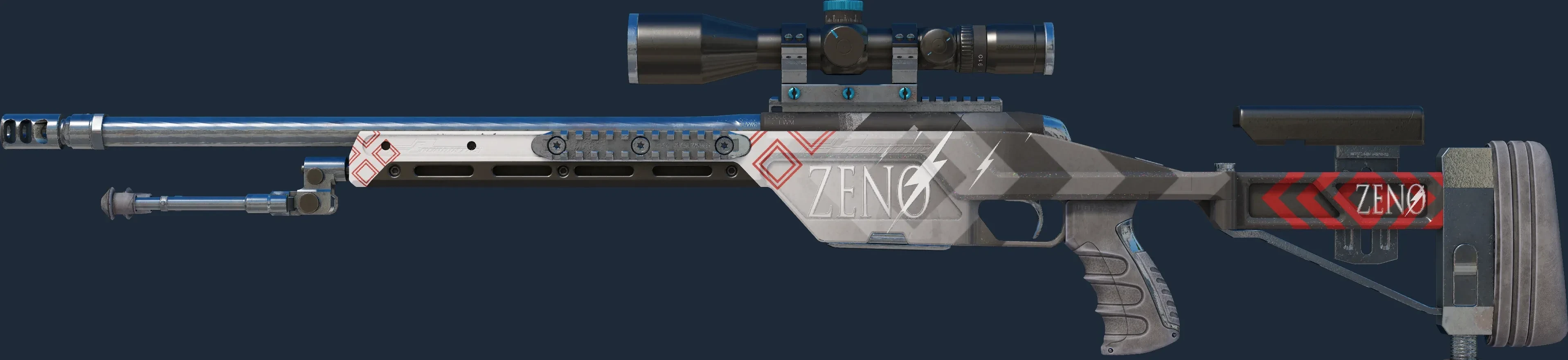 The SSG 08 | Zeno is a Covert grade skin for the SSG 08 in Counter-Strike 2. It features a Custom Paint Job finish and was designed by Valve.
