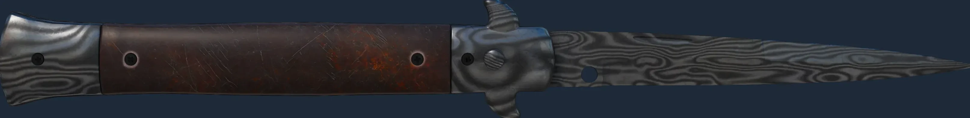 The Stiletto Knife | Damascus Steel is a Covert grade skin for the Stiletto Knife in Counter-Strike 2. It features a Custom Paint Job finish and was designed by Valve.