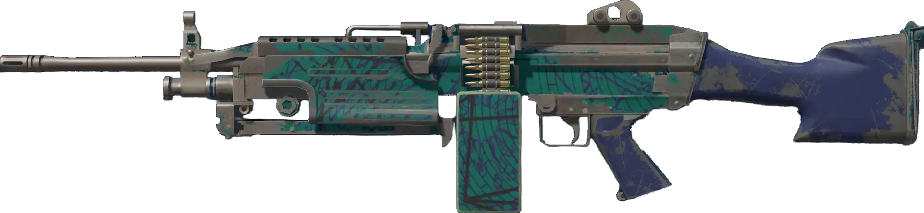 A strong open-area LMG, the M249 is the perfect choice for players willing to trade a slow fire rate for increased accuracy and a high ammo capacity. It has been painted with a hydrographic in a zodiac motif. _Who knows what the future holds_