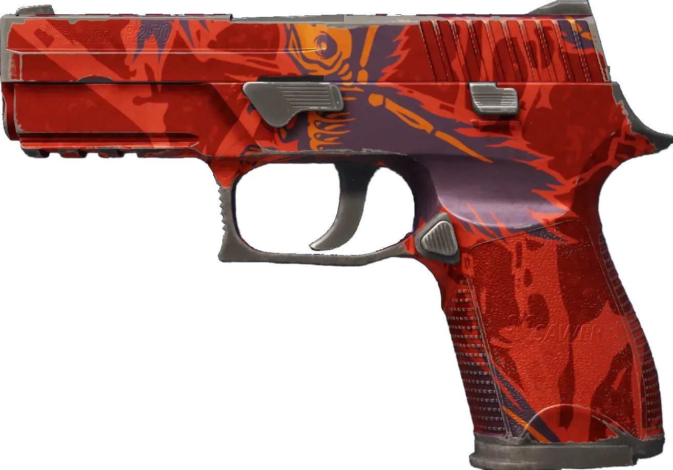 A low-recoil firearm with a high rate of fire, the P250 is a relatively inexpensive choice against armored opponents. A bright orange pattern of skeletal birds has been applied. _Claim your spot in the pecking order_