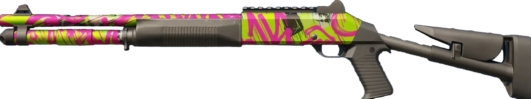 The XM1014 is a powerful fully automatic shotgun that justifies its heftier price tag with the ability to paint a room with lead fast. A vividly colored, punk-inspired pattern has been applied. _Yeah, right…_