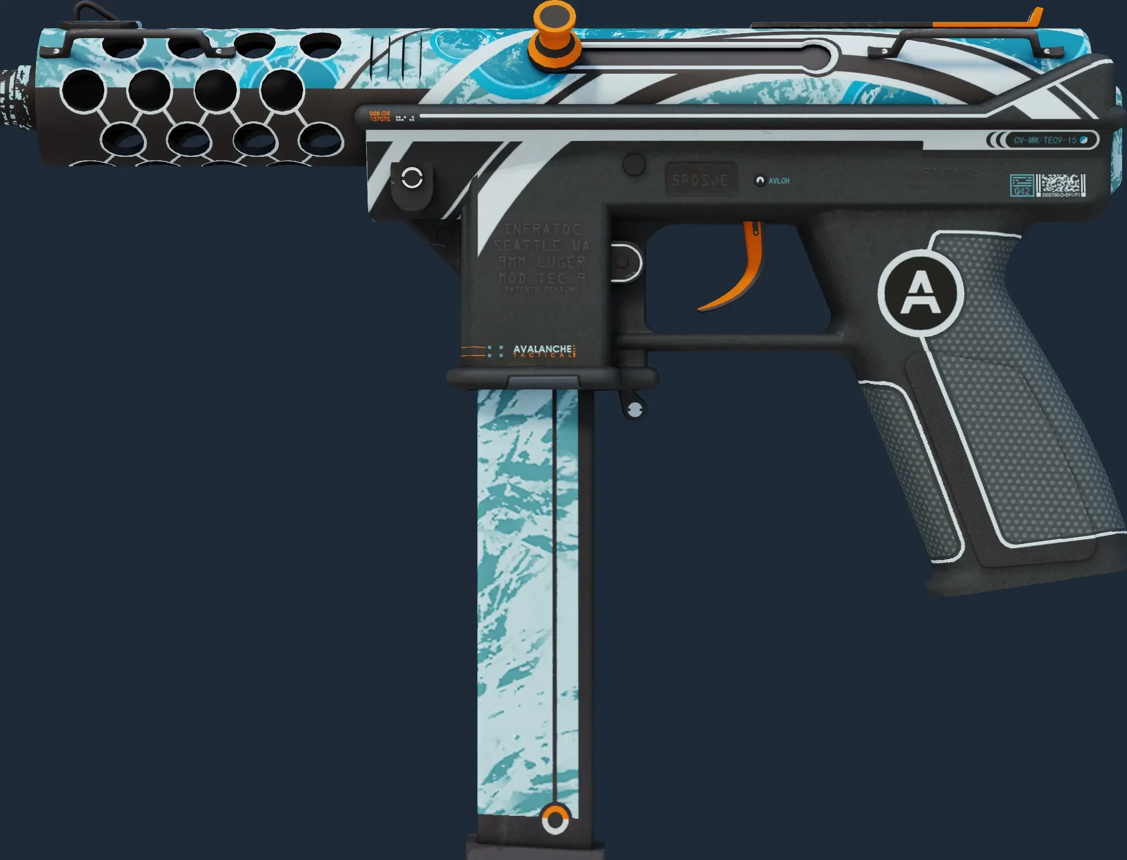 The Tec-9 | Avalanche is a Covert grade skin for the Tec-9 in Counter-Strike 2. It features a Custom Paint Job finish and was designed by Guardian Gear.