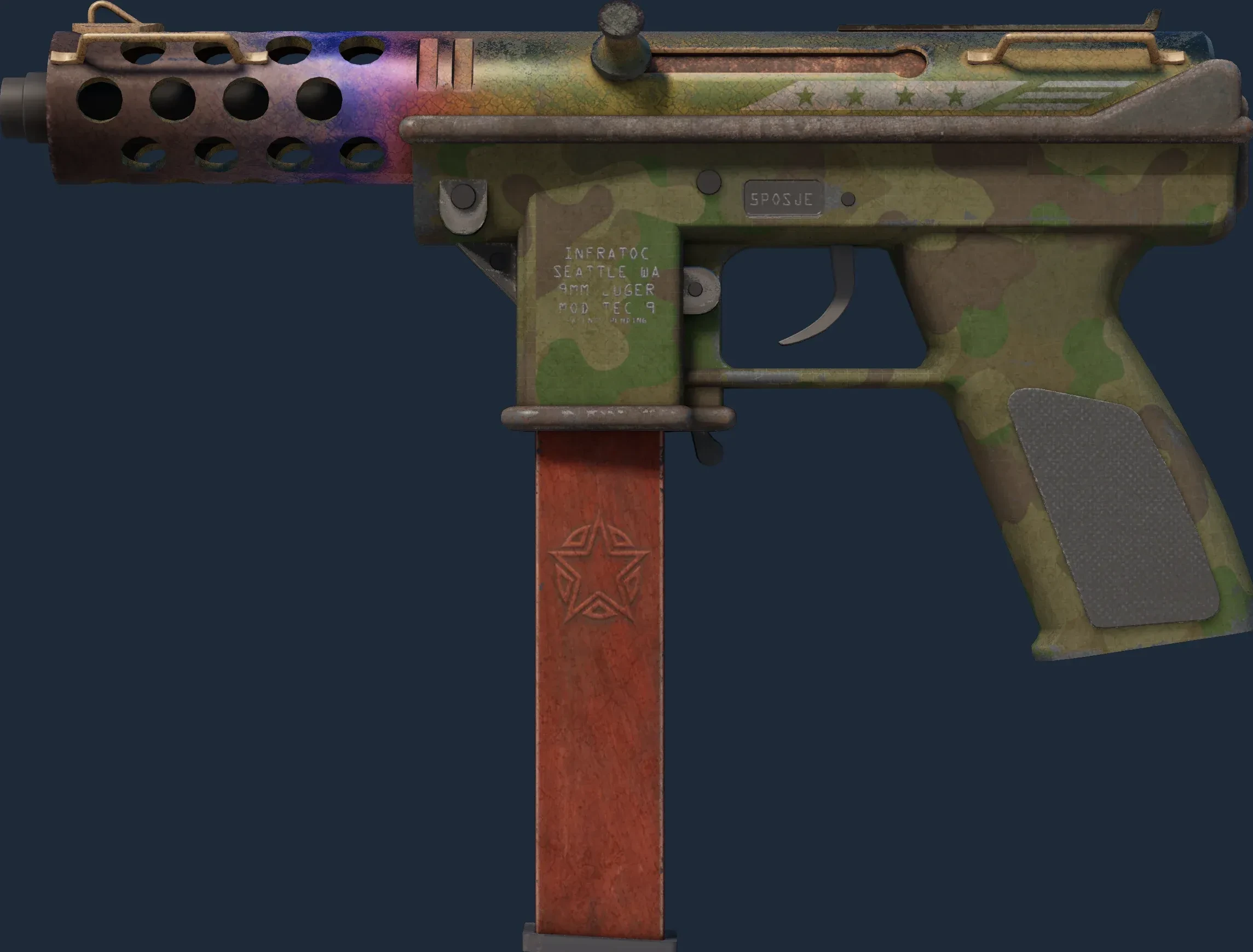 The Tec-9 | Fubar is a Covert grade skin for the Tec-9 in Counter-Strike 2. It features a Custom Paint Job finish and was designed by Marduk.