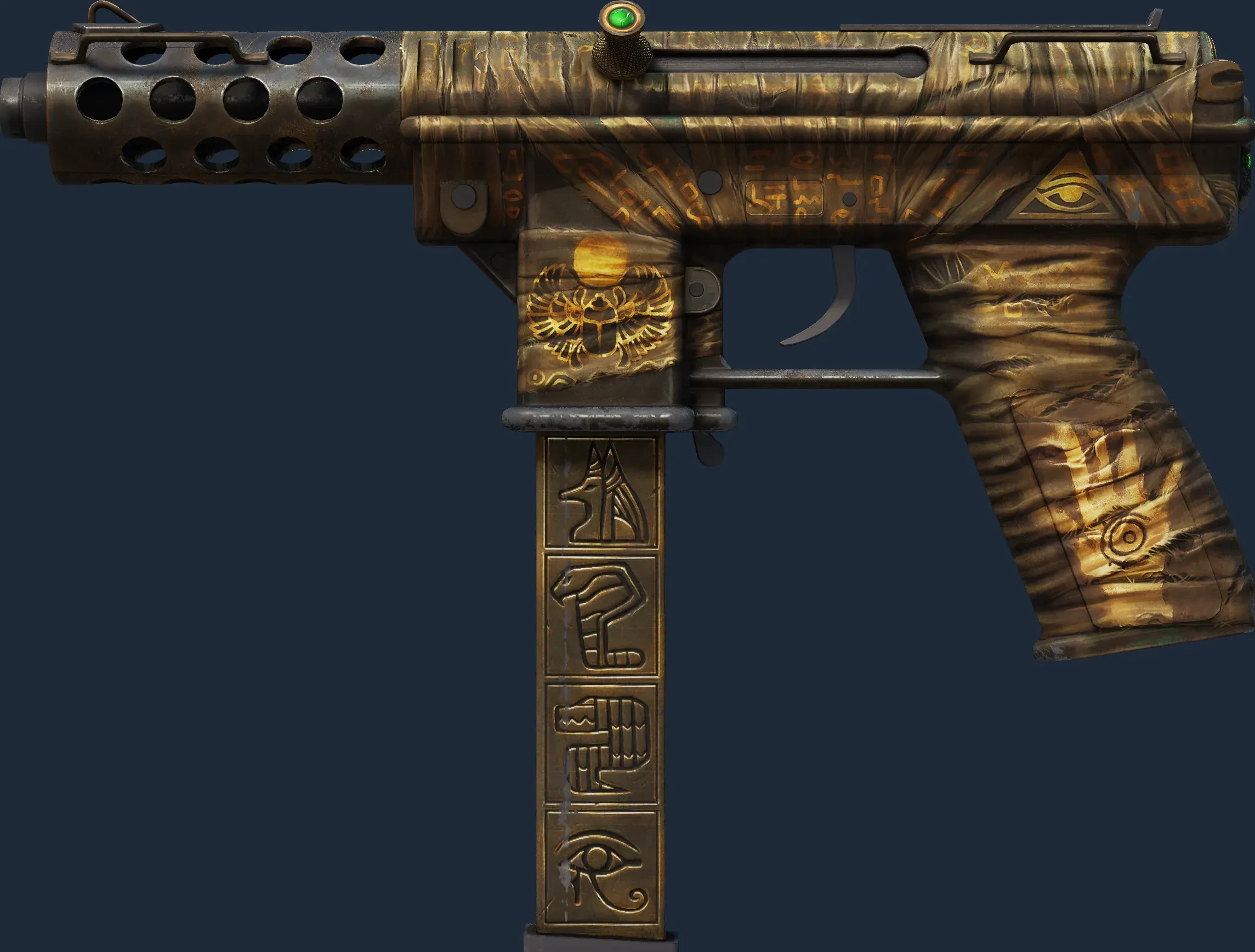 The Tec-9 | Mummys Rot is a Covert grade skin for the Tec-9 in Counter-Strike 2. It features a Custom Paint Job finish and was designed by apel8.