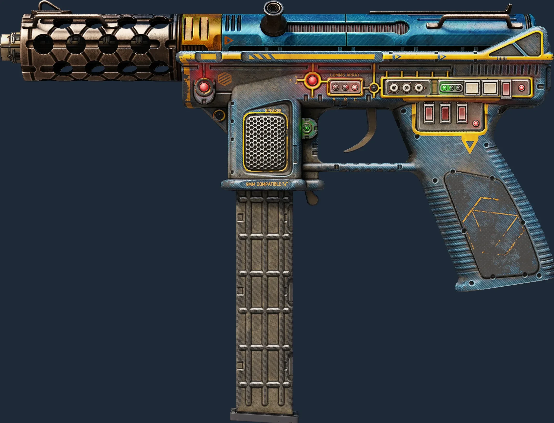 The Tec-9 | Remote Control is a Covert grade skin for the Tec-9 in Counter-Strike 2. It features a Custom Paint Job finish and was designed by Valve.