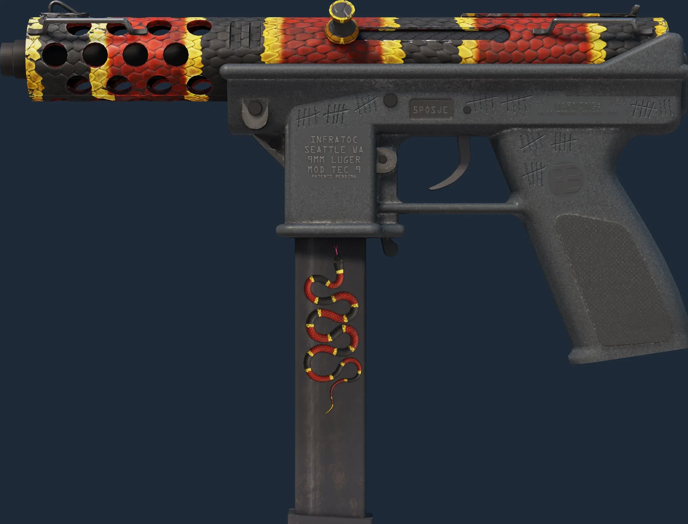 The Tec-9 | Snek 9 is a Covert grade skin for the Tec-9 in Counter-Strike 2. It features a Custom Paint Job finish and was designed by PTP.