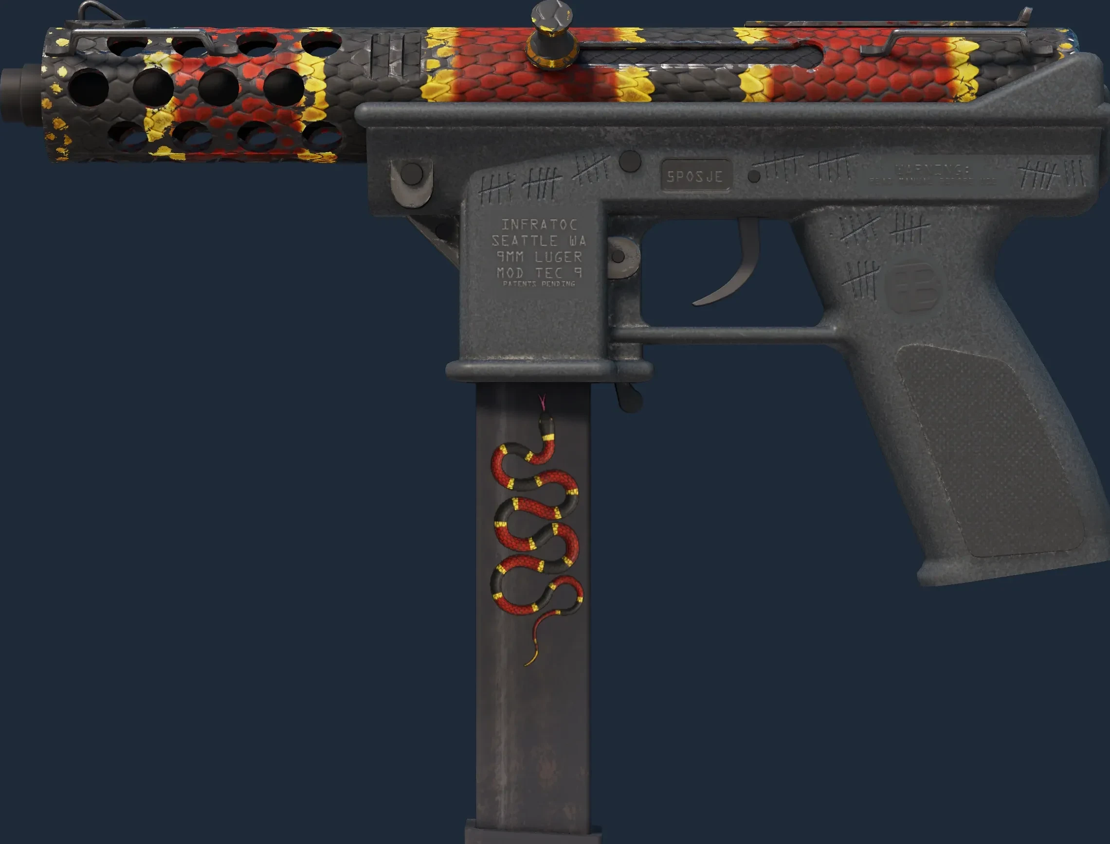 The Tec-9 | Snek 9 is a Covert grade skin for the Tec-9 in Counter-Strike 2. It features a Custom Paint Job finish and was designed by PTP.