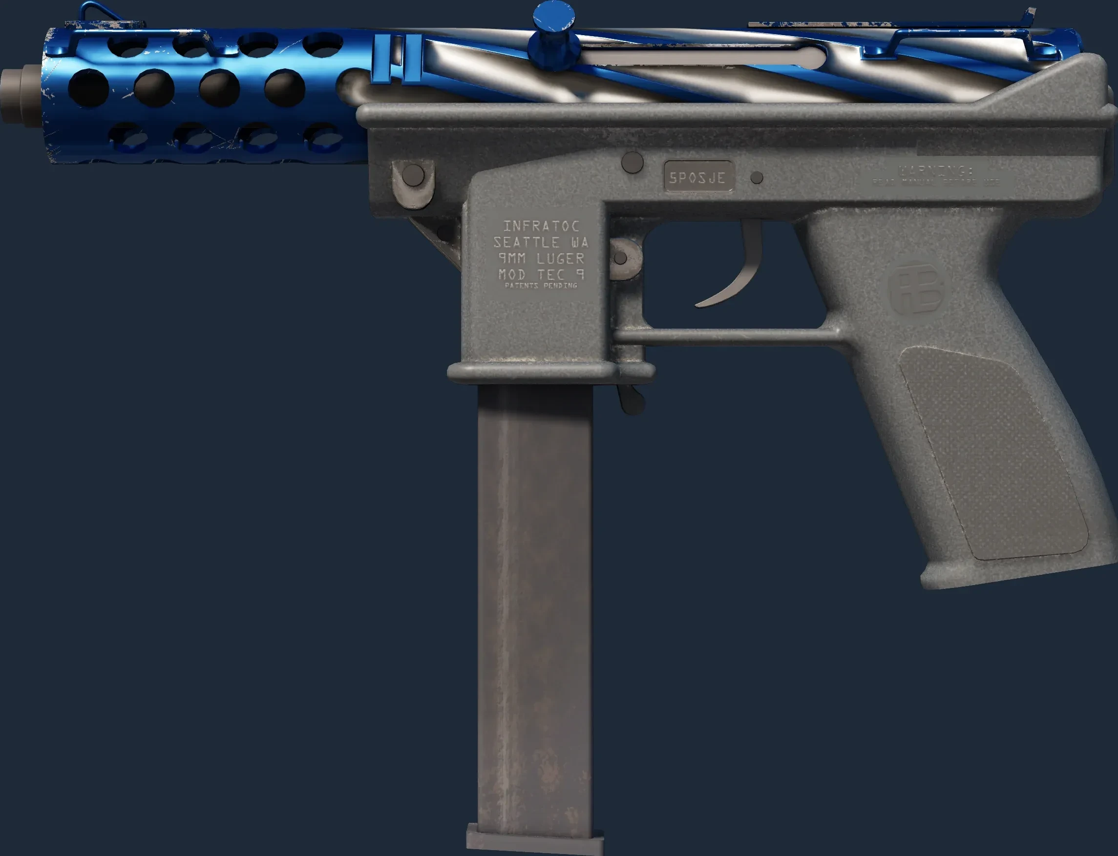 The Tec-9 | Titanium Bit is a Covert grade skin for the Tec-9 in Counter-Strike 2. It features a Custom Paint Job finish and was designed by Valve.