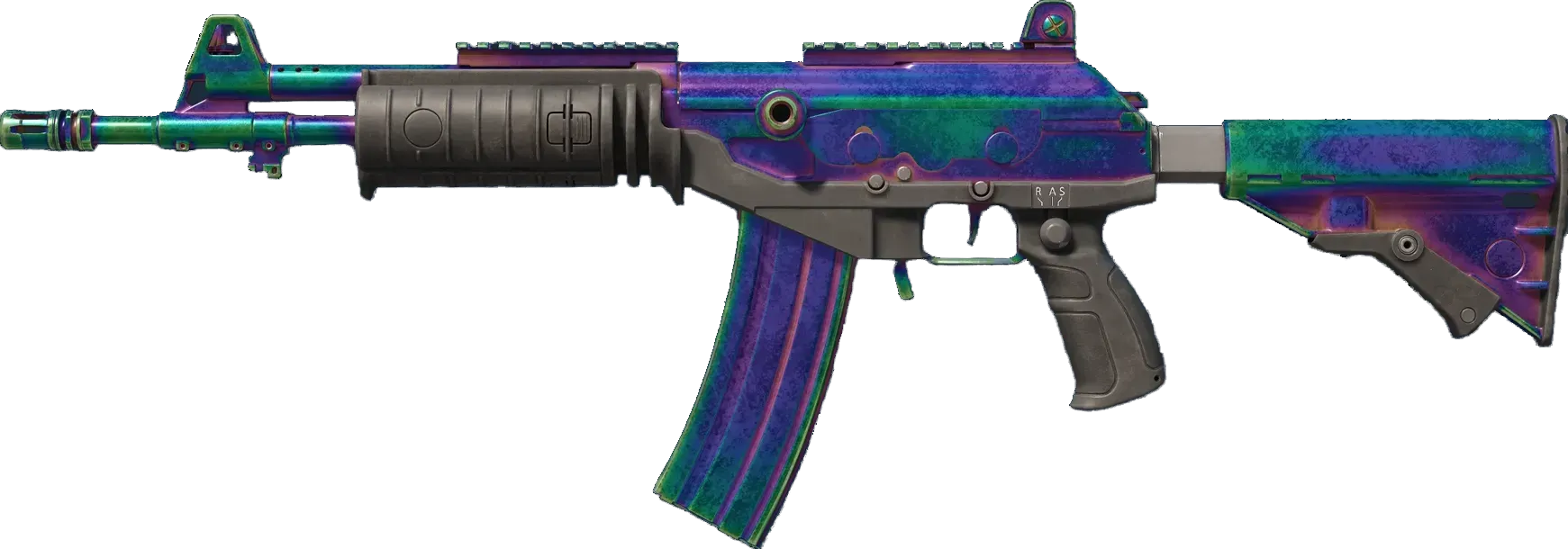 A less expensive option among the terrorist-exclusive assault rifles, the Galil AR is a serviceable weapon in medium to long-range combat. The rainbow spoon effect is achieved by heating the painted weapon to very high temperatures. By using this method the number of unique finishes is almost infinite. _Infinite possibilities_