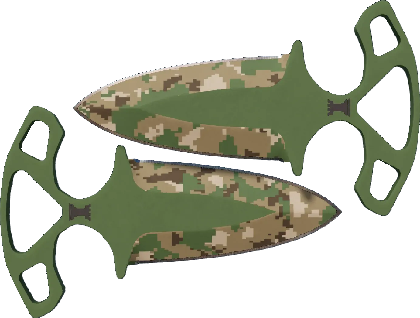 The float value of the Shadow Daggers | Forest Ddpat ranges from 0.00 to 1.00, which makes the skin available in all exteriors. For each exterior, there also exists a StatTrak version for the Forest Ddpat.