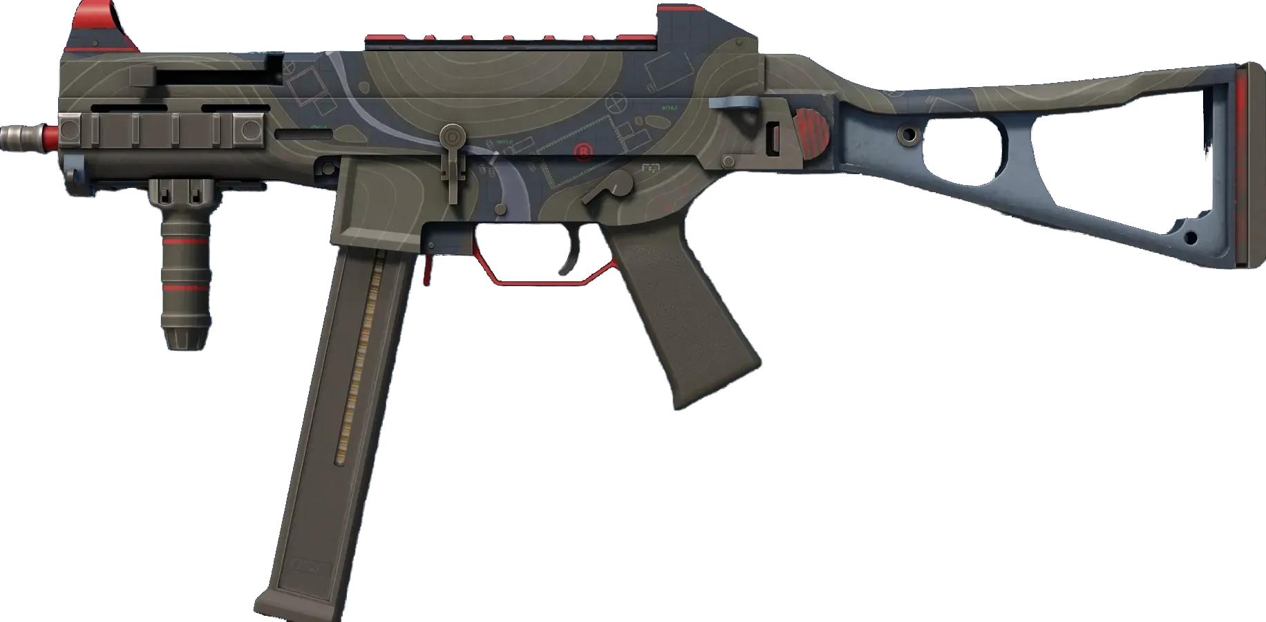 The misunderstood middle child of the SMG family, the UMP45's small magazine is the only drawback to an otherwise versatile close-quarters automatic. It has been given a hydrographic of a topographical map. _This is going to be a short meeting..._