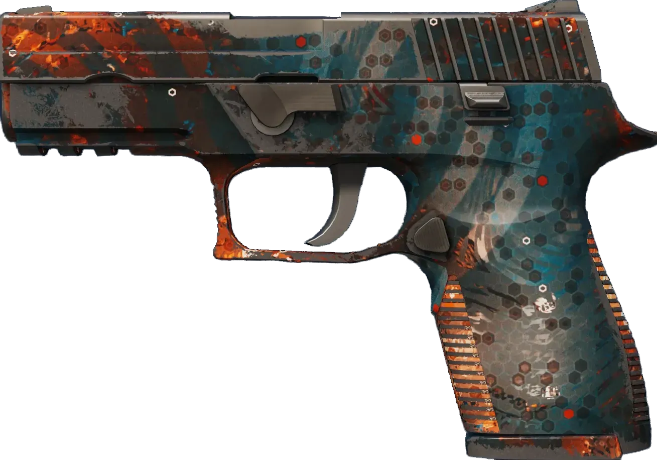 A low-recoil firearm with a high rate of fire, the P250 is a relatively inexpensive choice against armored opponents. It has been painted with a hydrographic in a cosmic pattern with concentric circles.