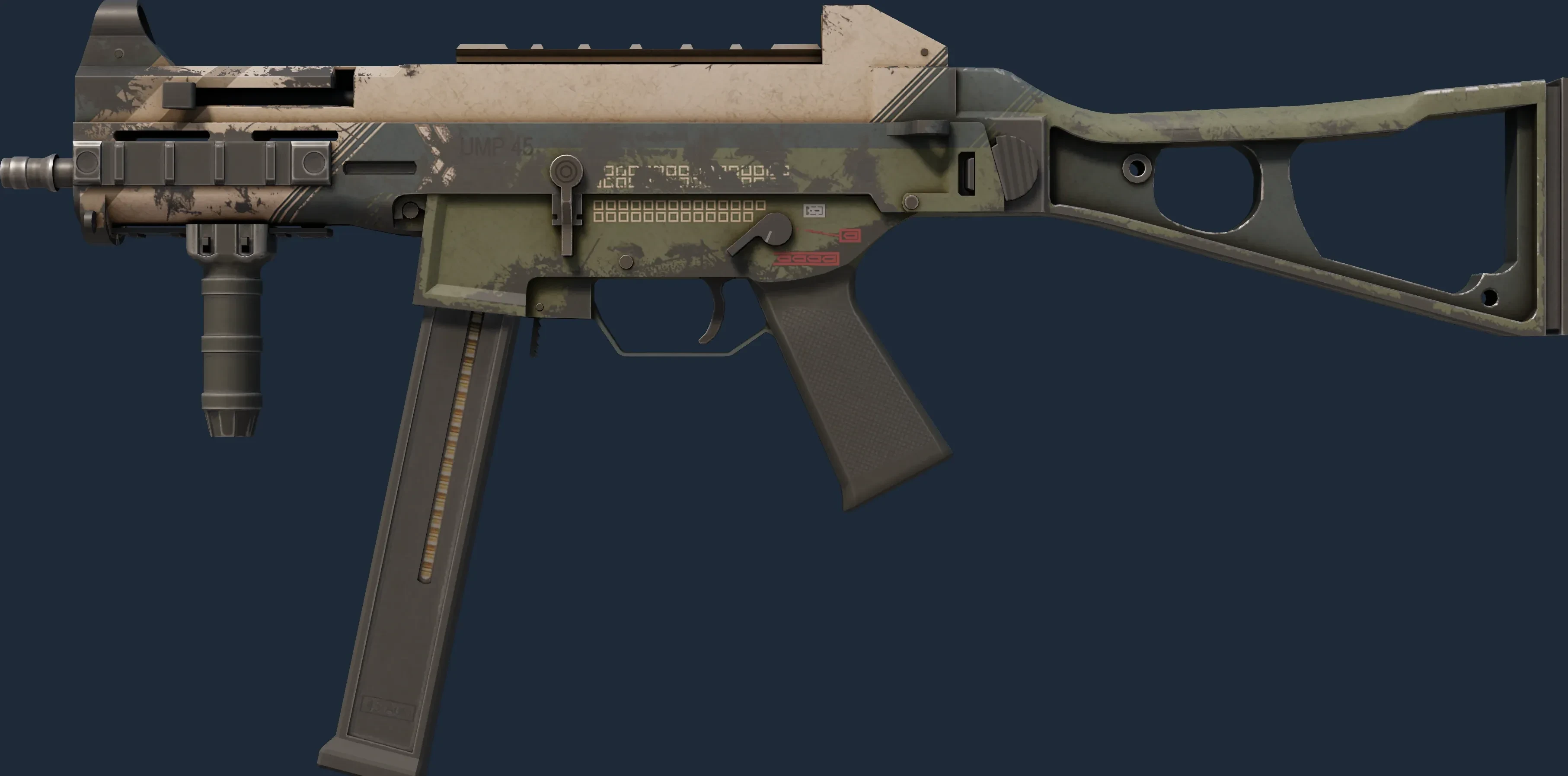 The UMP-45 | Corporal is a Covert grade skin for the UMP-45 in Counter-Strike 2. It features a Custom Paint Job finish and was designed by Coridium.