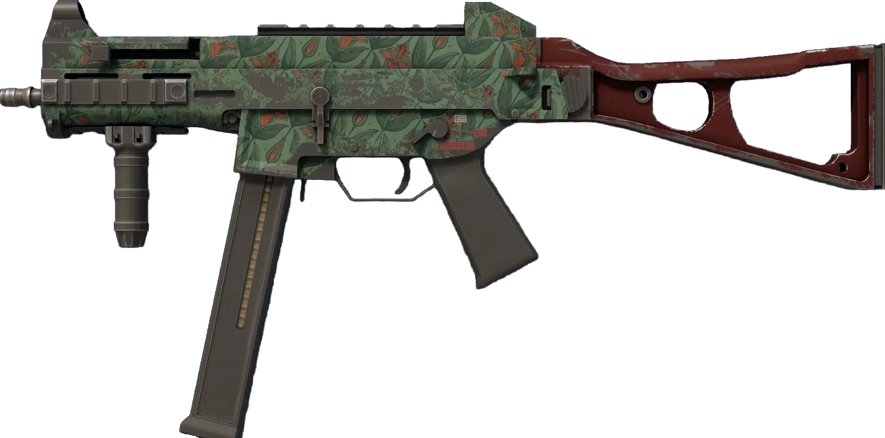 The misunderstood middle child of the SMG family, the UMP45's small magazine is the only drawback to an otherwise versatile close-quarters automatic. A hydrographic pattern of red lilies has been applied. _While beautiful, lilies are most often associated with death_