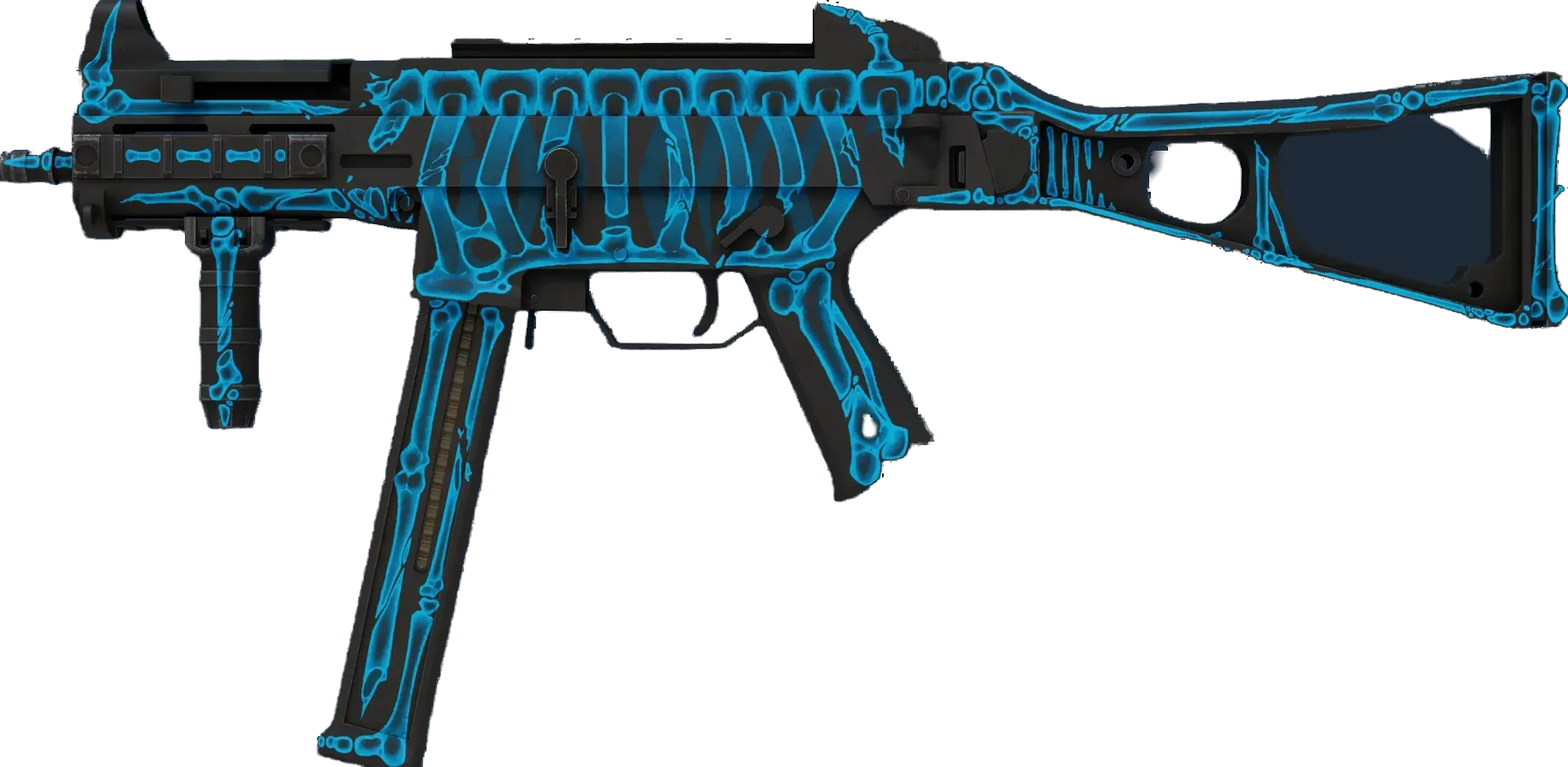 The misunderstood middle child of the SMG family, the UMP45's small magazine is the only drawback to an otherwise versatile close-quarters automatic. A custom paint job has been applied which resembles an x-ray; rib cage and all. _"Please remove all metal objects from your pockets"_