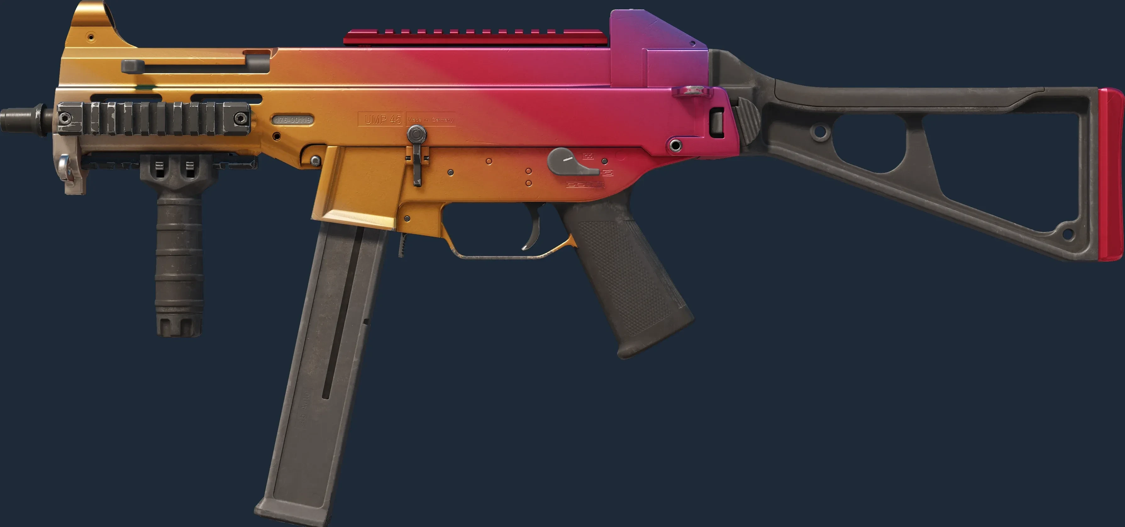 The UMP-45 | Fade is a Covert grade skin for the UMP-45 in Counter-Strike 2. It features a Custom Paint Job finish and was designed by Valve.