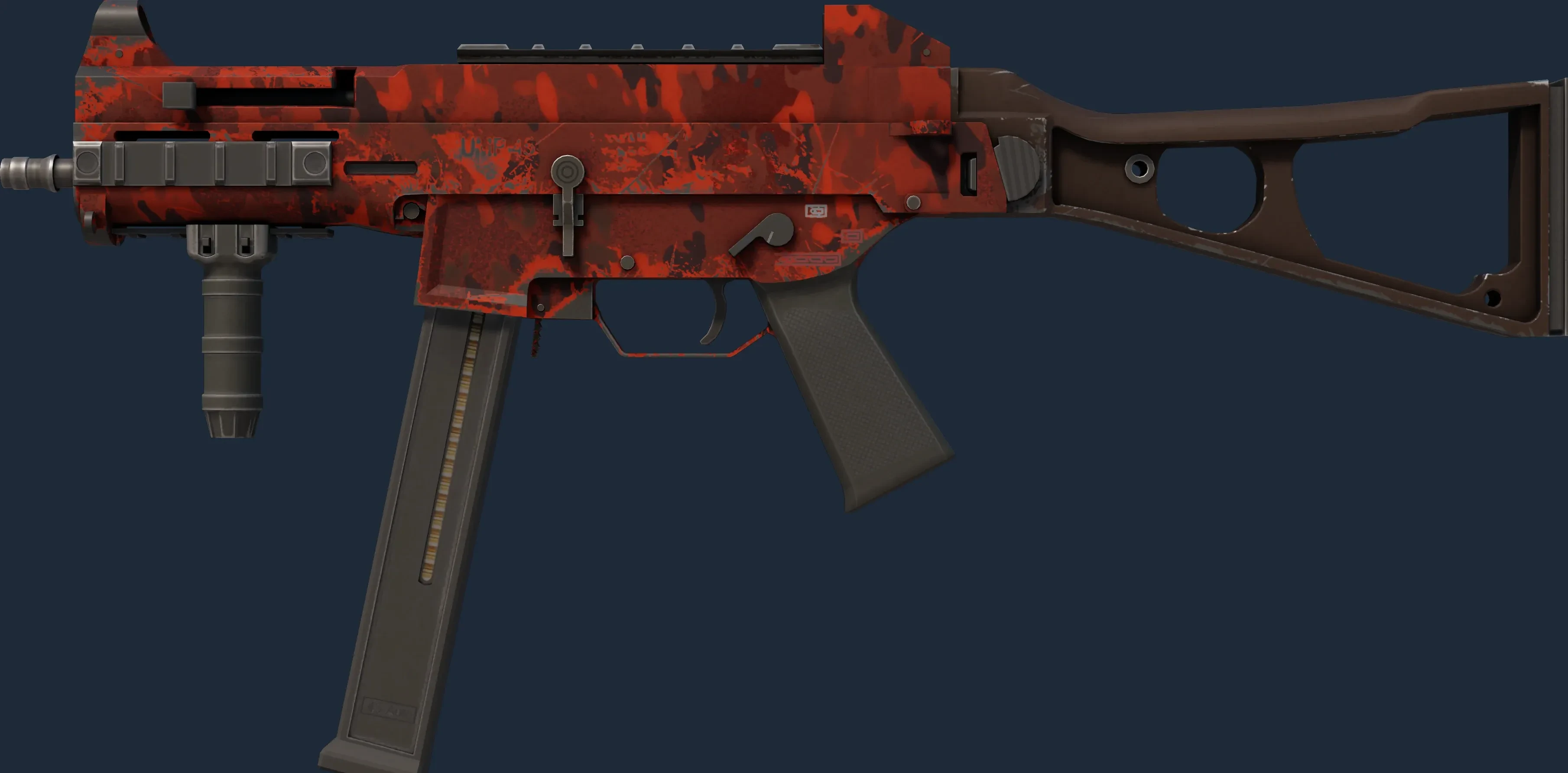 The UMP-45 | Full Stop is a Covert grade skin for the UMP-45 in Counter-Strike 2. It features a Custom Paint Job finish and was designed by Valve.