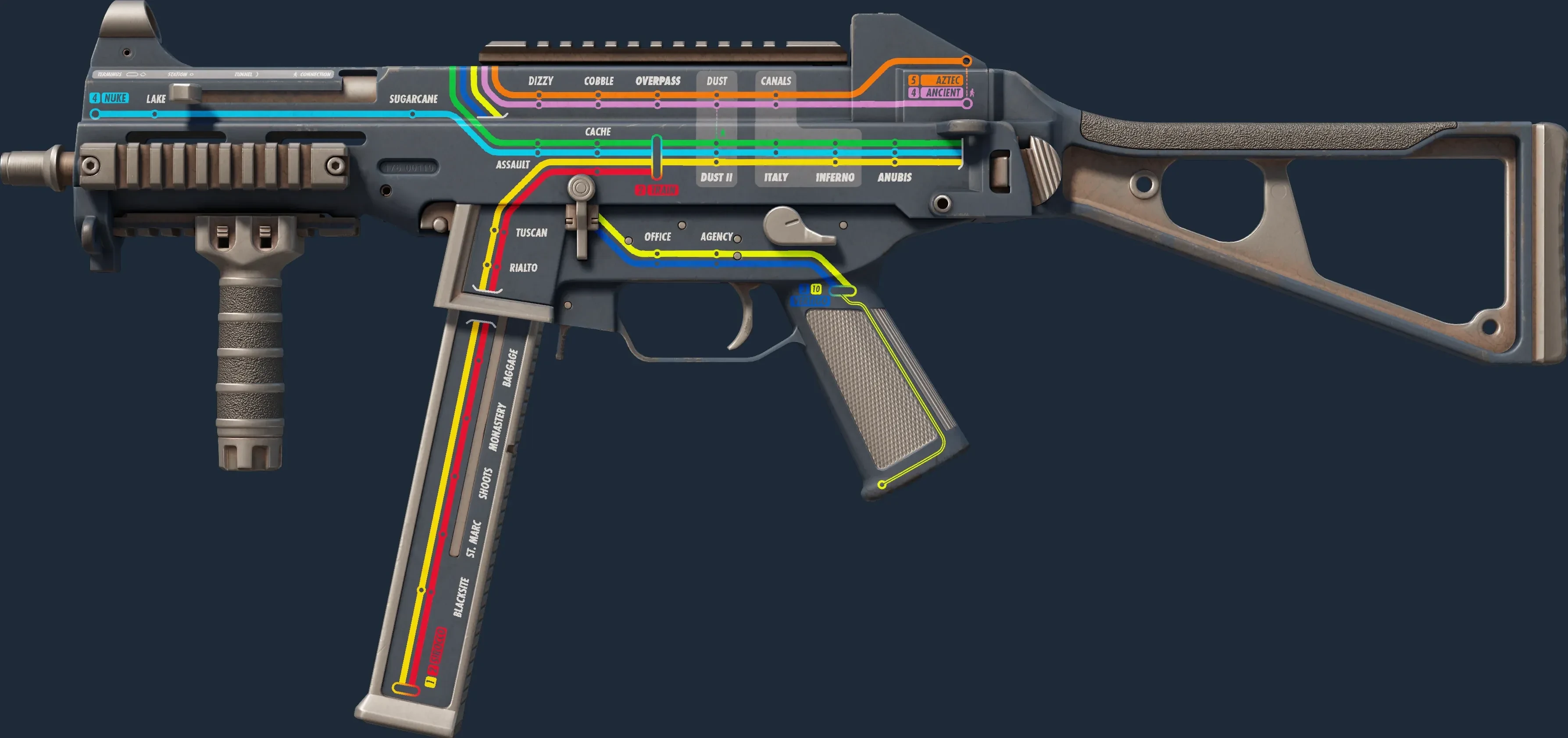 The UMP-45 | Late Night Transit is a Covert grade skin for the UMP-45 in Counter-Strike 2. It features a Custom Paint Job finish and was designed by cimota.