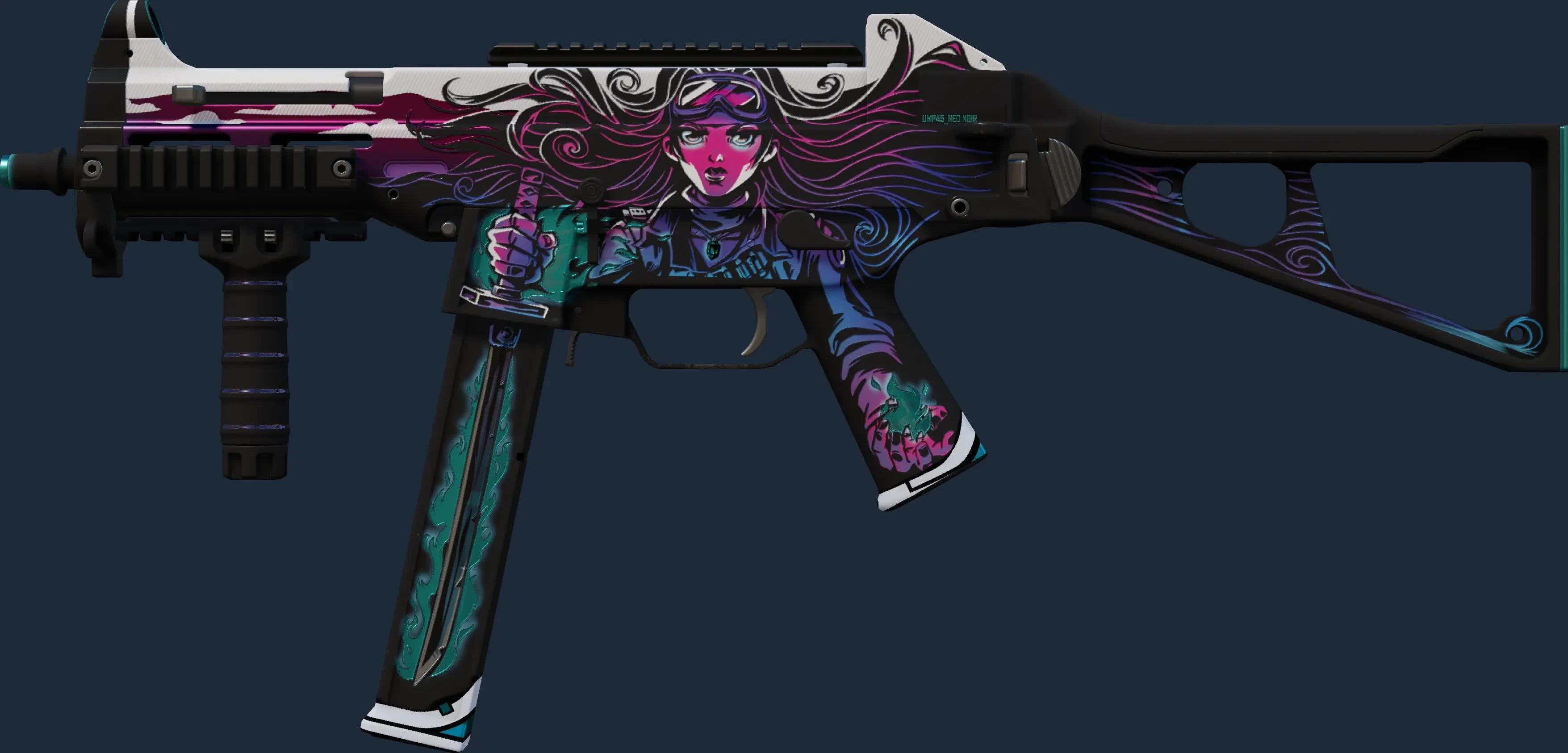 The UMP-45 | Neo Noir is a Covert grade skin for the UMP-45 in Counter-Strike 2. It features a Custom Paint Job finish and was designed by Blazer.